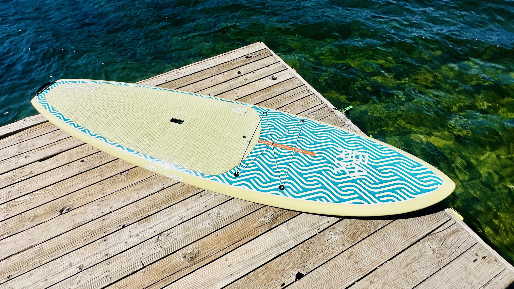 The Catalyst has a cargo net in the fore section, but with a max weight capacity of around 200 pounds, you can't load it up with as much gear as other models. However, we found it still plenty stable with a small soft cooler or dry bag strapped to the front. We also wouldn't recommend the Catalyst if you are looking for a board with the hope of bringing your dog along, as their claws will most likely scratch up the surface and may even push you over the board's weight limit.