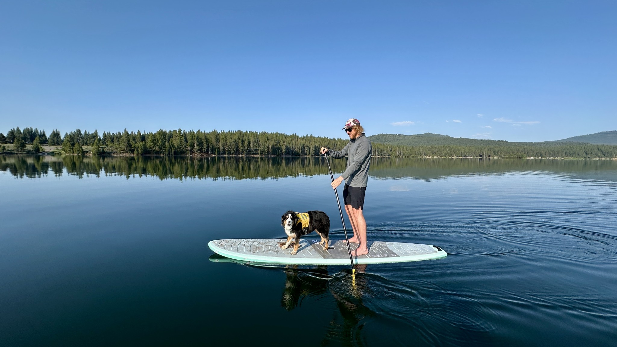 Our beginner-level paddlers loved this board and felt confident on it from the start. This board quickly became a favorite for our dog-owning testers, too, because even with a dog on the front or moving around, they felt comfortable standing up and paddling.