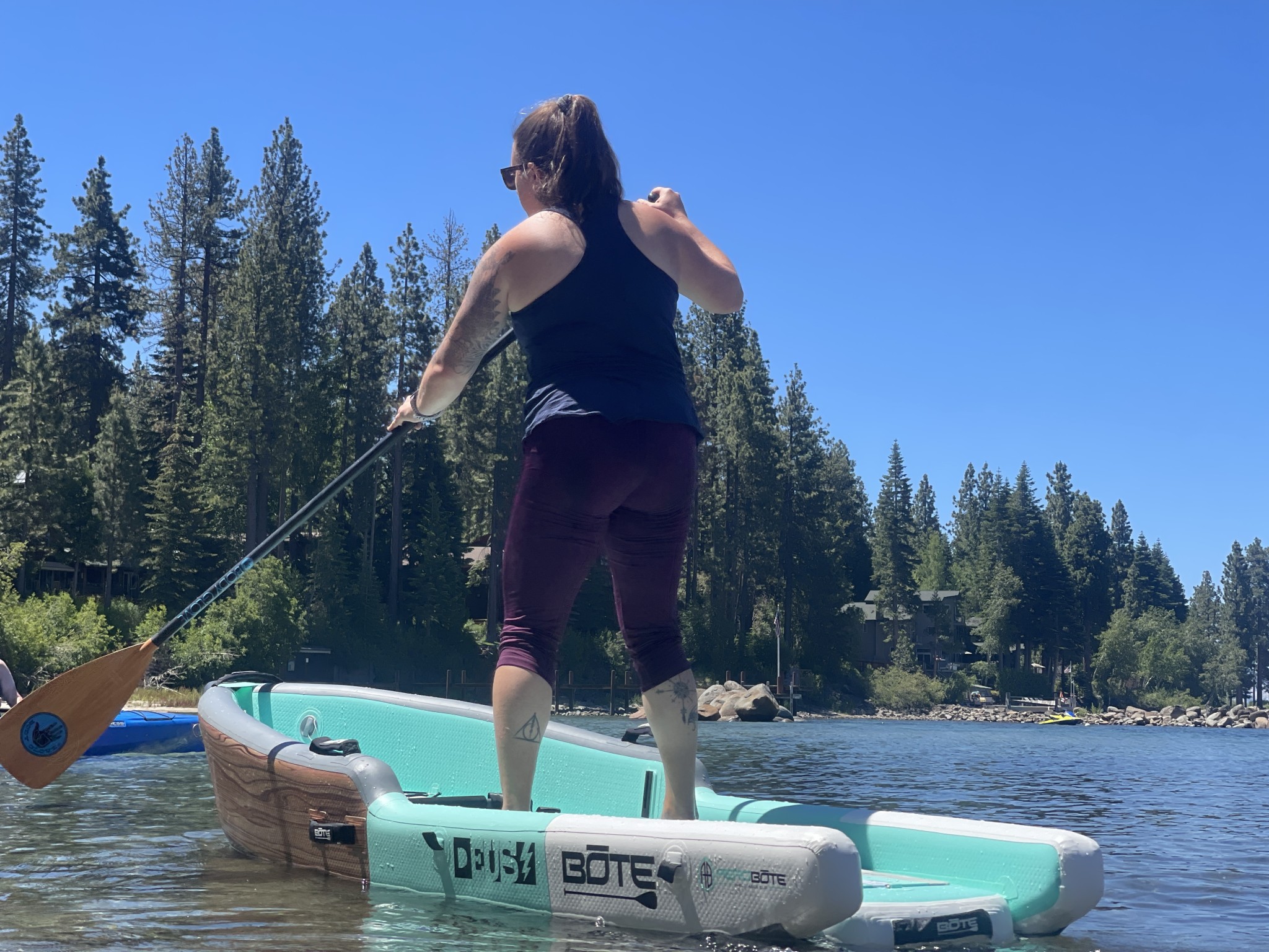 Getting on and off this board is rather easy, as its width renders it quite stable. Inflated to such a high PSI (15, where most kayaks go only to two or three PSI), this craft feels remarkably sturdy to paddle. Because it floats so high in the water, it can feel a little more tippy when making big movements - just like a SUP. But firmly seated, we never saw any one of our testing team come even close to falling off this boat.