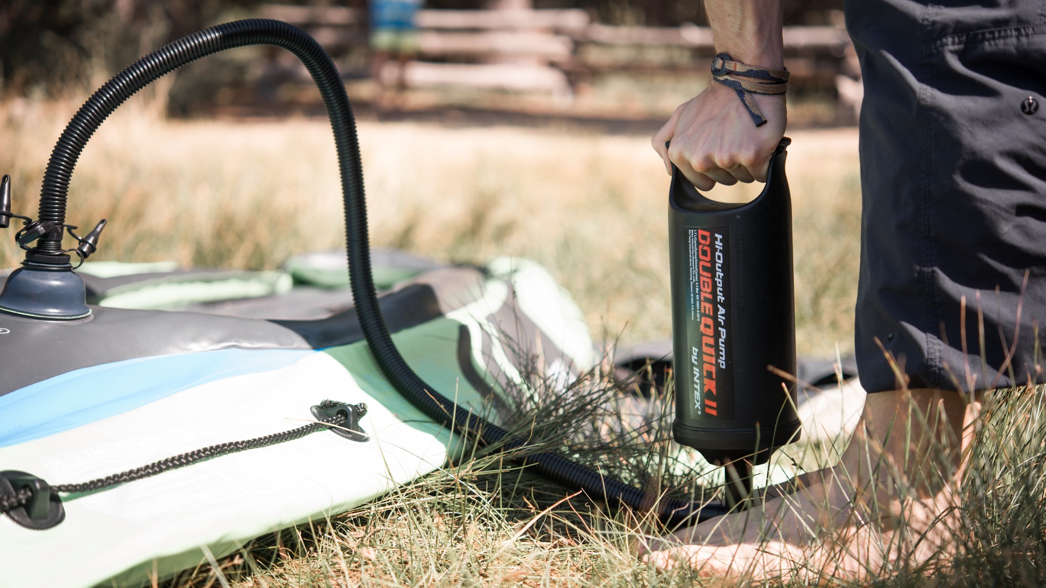 As far as inflatable kayaks go, the Challenger is pretty easy to set up. It only has two compartments (the floor and the hull/sides) and the seats that require inflating. It also comes with a handy measuring gauge to help you tell when the kayak is properly inflated. This boat is made of a single layer of waterproof fabric, which dries quickly. As much as we appreciate having a complete setup from the get-go with the Challenger, we quickly discovered how much of a pain the included pump is. It's very small and takes an exceedingly long time to fill the boat. The whole kayak easily fits back into its oversized stuff sack as well, including all its components, like the paddles and pump.