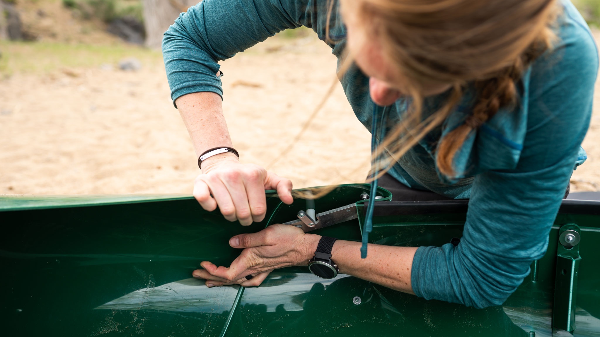 The high-density thermoplastic that comprised the Tucktec feels durable and long-lasting. The company claims it's rated for “1000s of folds”. We're glad to read that because bending the little plastic arms all the way over onto the body of the boat in order to latch the clamps in place creates extreme pressure points on the eighth-inch polypropylene that appear starkly white and look rather alarming in contrast with the bright color of the plastic. Our worries aside, the actual construction and materials of this craft seem sturdy and reliable.