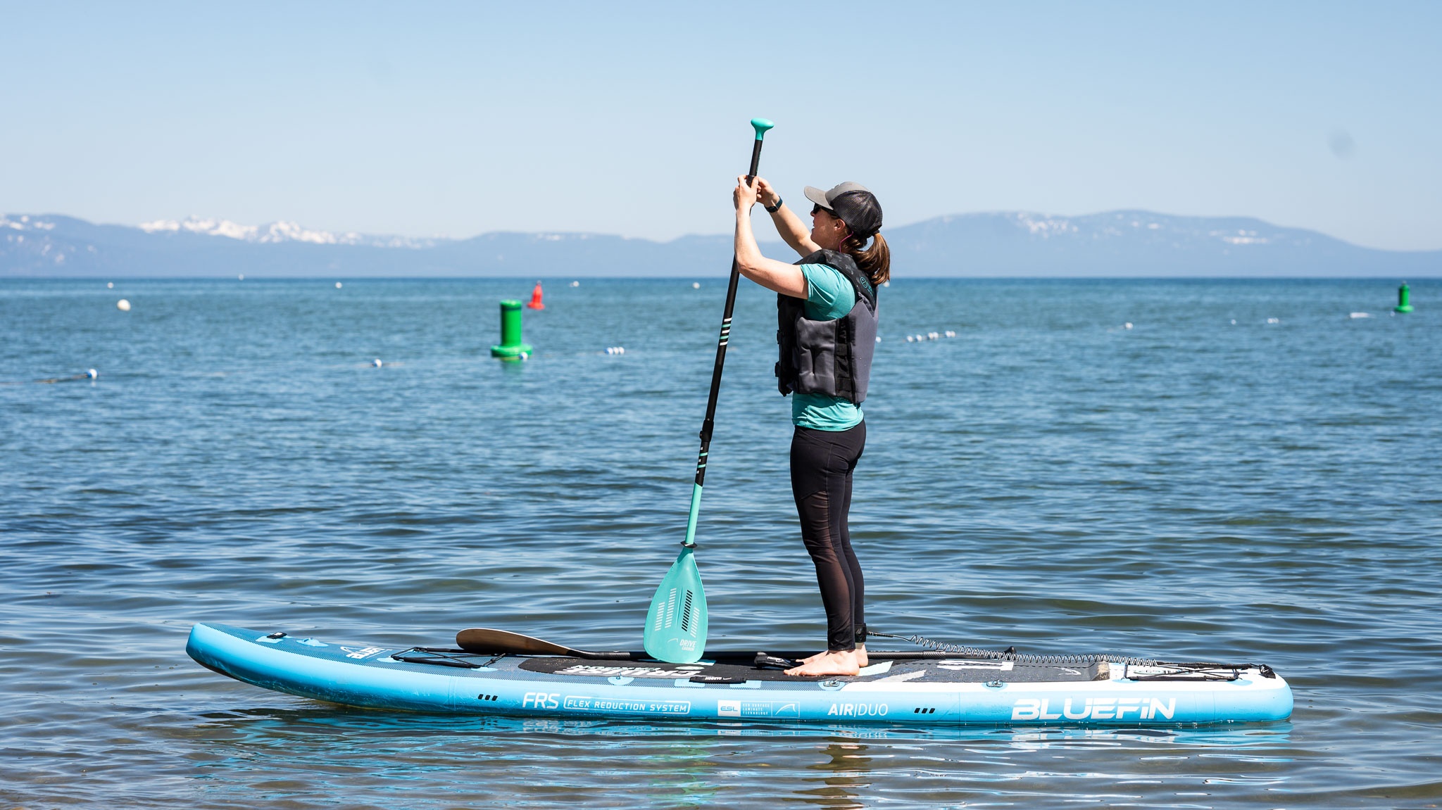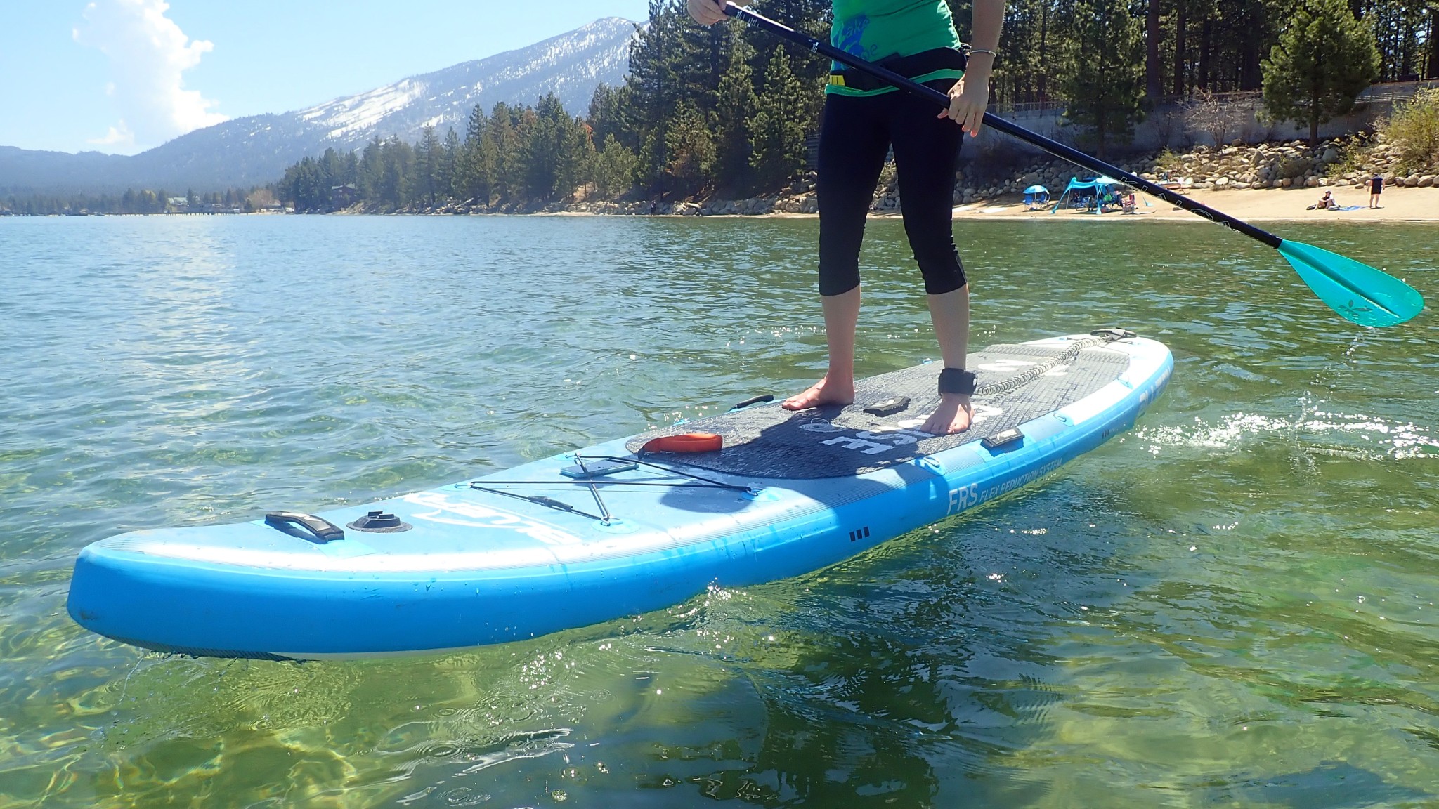 The board's rigidity is enhanced by a second inflation chamber underneath the deck pad and a carbon fiber Flex Reduction System (FRS) built into each side rail. These features combine with the board's larger overall size and weight to help withstand waves and chop better than most competitors. Other models have similar carbon fiber reinforcements to help enhance rigidity but lack the overall mass of the Cruise Carbon, which lessens the risk of being tossed around in rough waters. Our paddlers had no problem fighting through the choppiness during a windy day.