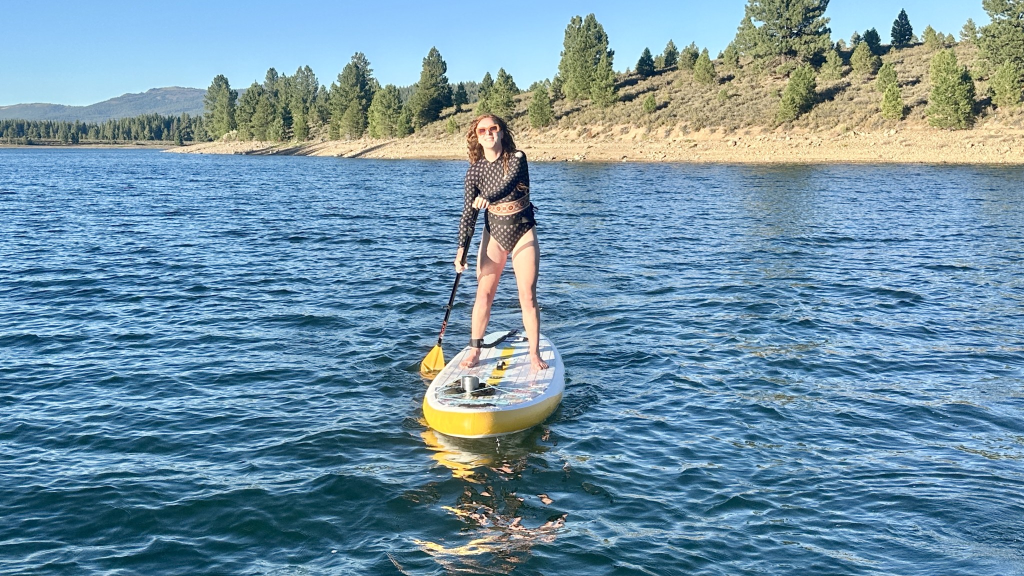 Some of our test paddles were extremely windy and choppy. Both our advanced and new paddlers felt confident in their ability to stay standing even with waves coming from all directions. The pointed nose of the board really cuts through waves, making it much easier to stay upright when paddling in rough conditions. On calm water days, this board was incredibly fun to take out for a long paddle or just to hang out on with our friends. Having a dog or two people on board was no issue either.