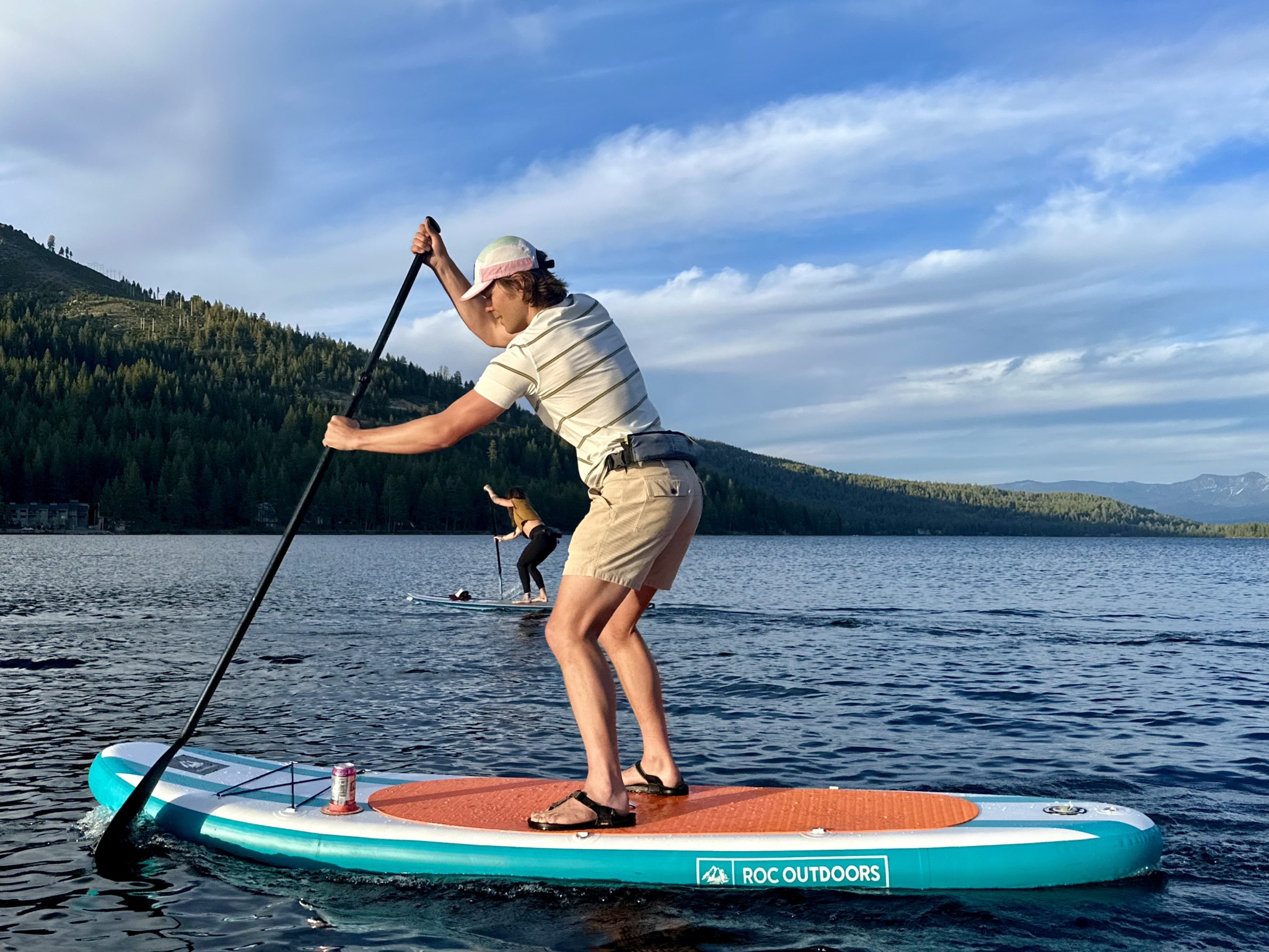 We tested this board in wind, calm water, and even a small rapid river day, and no matter the conditions, it was easy to stand up on. We brought a dog friend onboard, tried some headstands, and had two people on it, and this board rocked it all. Jumping up and down in the middle of the board had far less flex than many of its competitors, which surprised us because it has a very similar feel to some of the more flexy boards. The ROC Scout SUP is made of military-grade lightweight PVC material, making it durable without adding additional weight.