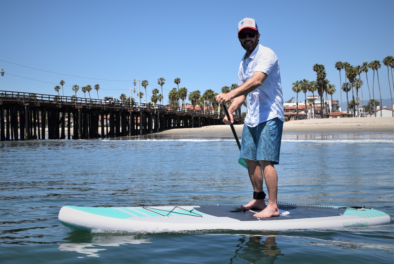 While stepping onto this board feels less stable than our highest-scoring models, its square tail and recreational-style dimensions keep it reasonably well-balanced. The platform feels more secure once you get your sea legs and gain some momentum. The long center fin helps the board track in a straight line and provides a bit of added stability. This is a reasonably steady board for beginners, but it's not the most forgiving teacher and isn't our first choice for a yoga board or rough water unless you're pretty small, have fantastic balance, or are just not that concerned about getting wet. There is quite a bit of flex with this board, especially if you weigh a bit more or are in choppy water.