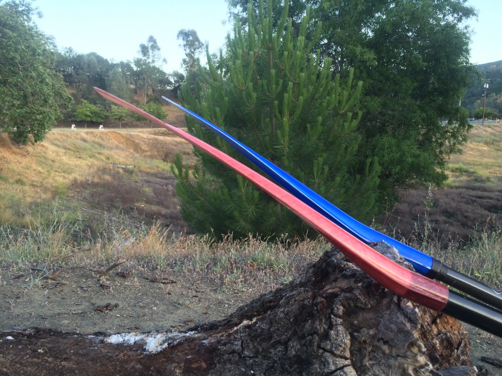 The photograph above shows the differences between the shorter and rounder blade of the Insanity on the left and the longer, more rectangular blade of the Zen 95 on the right. Even though the bottom of the blades are lined up, notice the difference of where the blade begins on the Insanity on the left and the Zen 95 on the right. We think the extra inch of width on the Insanity might aid in efficiency regarding moving water effectively.