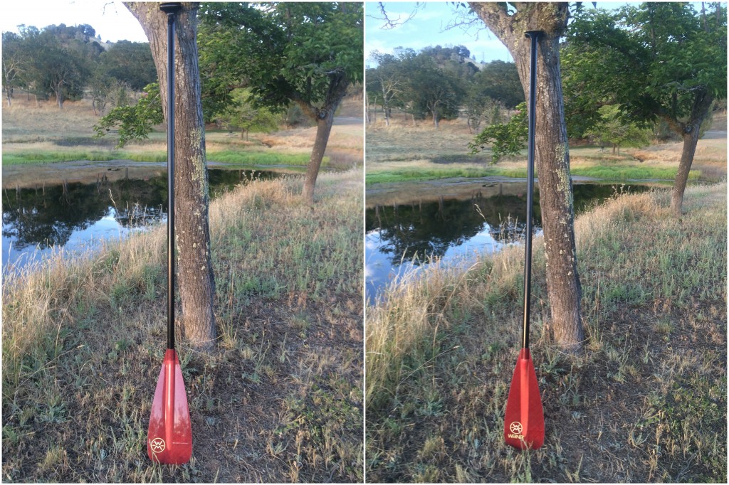 The Zen 95 is one of the least compact products we tested until you take the two pieces (the handle end and the blade end) of the paddle apart. With both pieces attached, the smallest size that it can be is 70". With the two pieces apart, the blade end measures 64.5" and the handle piece measures 21". The blade end measurement size is about average, and the handle end is the smallest of all the products we tested, and this is because it has the shortest adjustment range. The small size of the handle end also aids in keeping the weight down.