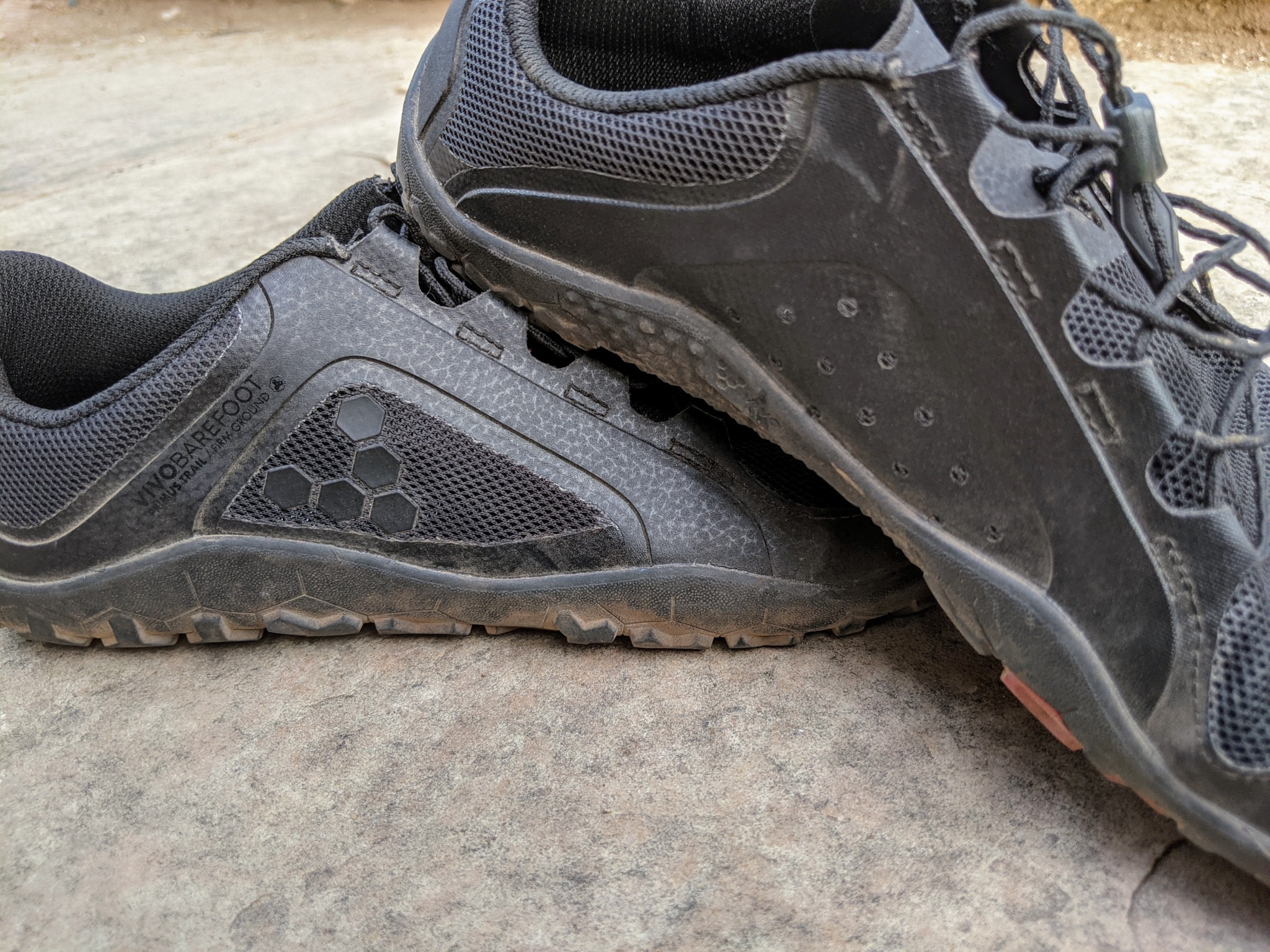 The Primus Trail II FG is surprisingly heavy, despite the simplistic design. Although they stand at a very reasonable stack height for a barefoot runner, all of the 6.5mm is concentrated in the hard rubber of the Firm Ground outsole. Additionally, to improve its durability as a trail runner, the design incorporates a lot of a recycled, TPU-like material to reinforce the mesh upper — the medial sidewall is almost completely covered in this material.