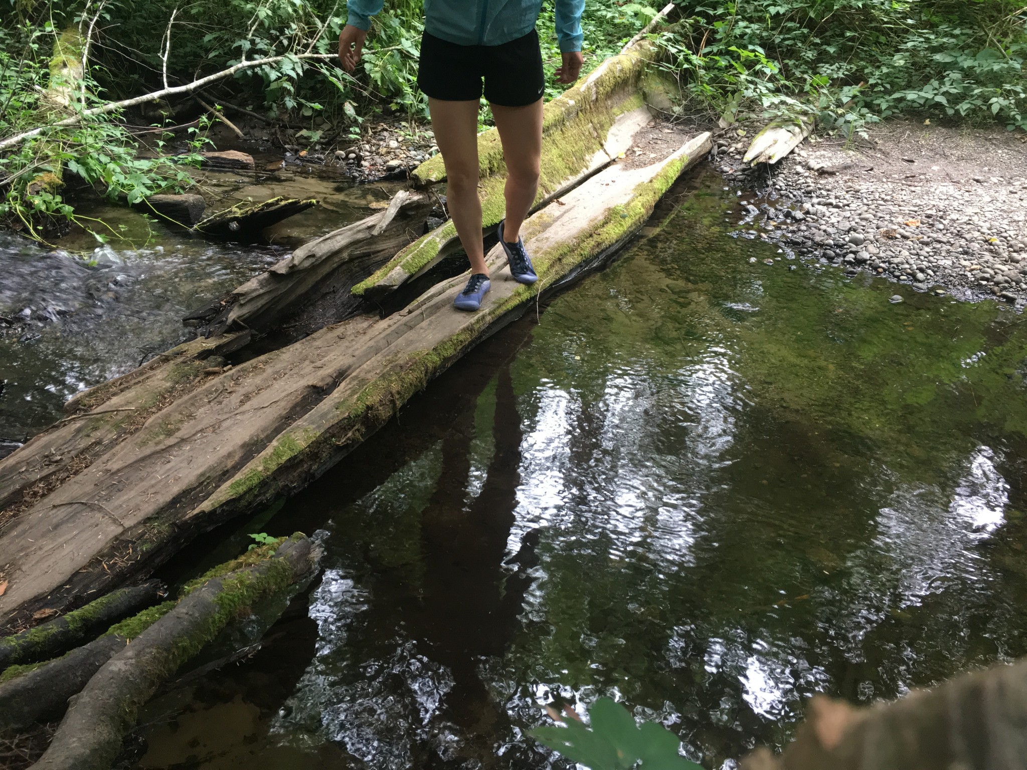 Part of our consideration for traction with minimalist shoes is how well the shoe preserves ground feel. What minimalist shoes lack in lugs, they make up for in your foot's natural ability to grip the ground. The Vapor Glove is a prime example: the very thin sole allowed us to bend our foot swiftly to match the surface, thereby improving traction and balance through the terrain.