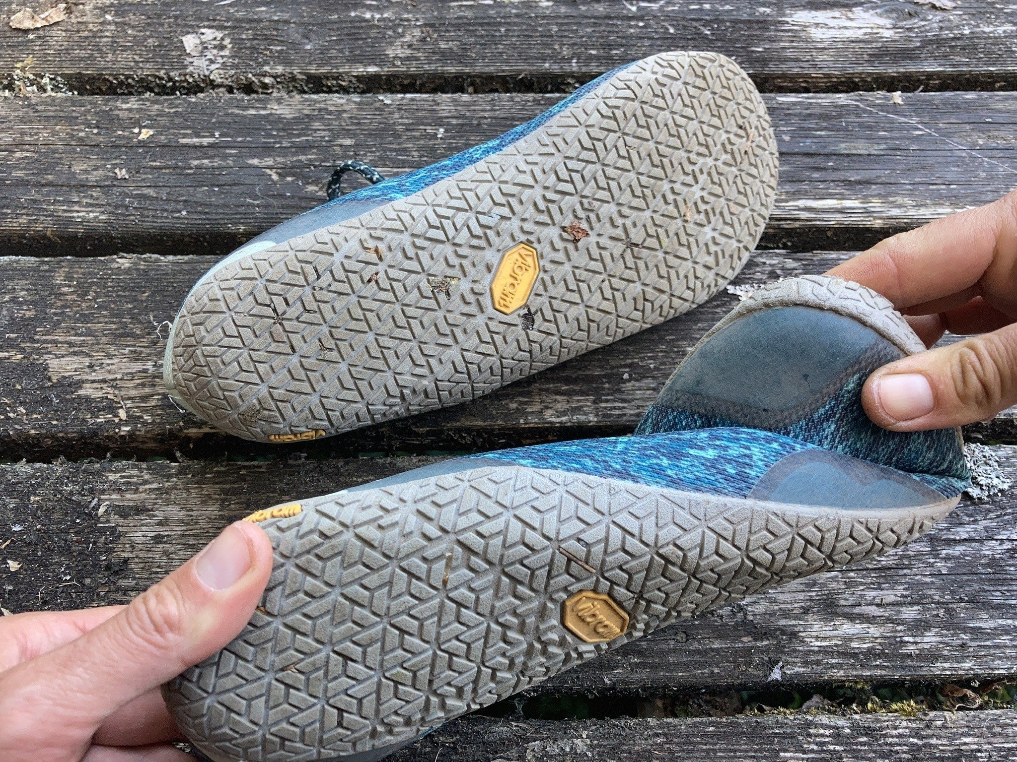 We love the tread and sole on the Vapor Glove. The sole is made of Vibram rubber, sticky and durable enough to be used in a lot of climbing shoes and mountaineering boots. The tread is highly textured with a design that parts as it flexes. Combined with the suppleness of the sole, this meant that our feet felt gecko-like on a variety of surface types and terrain features.