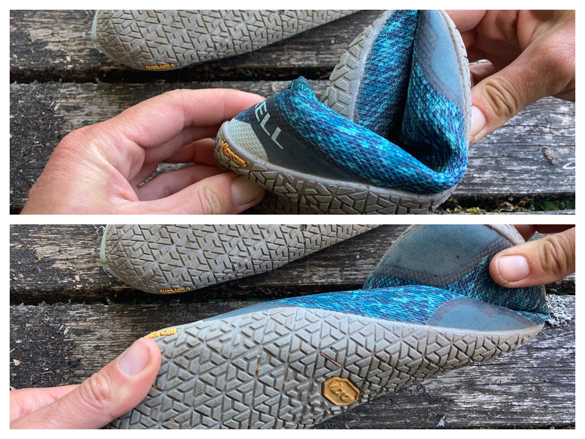 The sole has good surface area contact on roads, but as the terrain changes, so does the tread — the lugs spread apart, exposing more surface area to grip soft and variable surfaces. This is an excellent and versatile design that uses the suppleness of the minimalist design to improve traction. We often felt as if our feet were gripping the earth in these shoes, exactly as they would when bare.