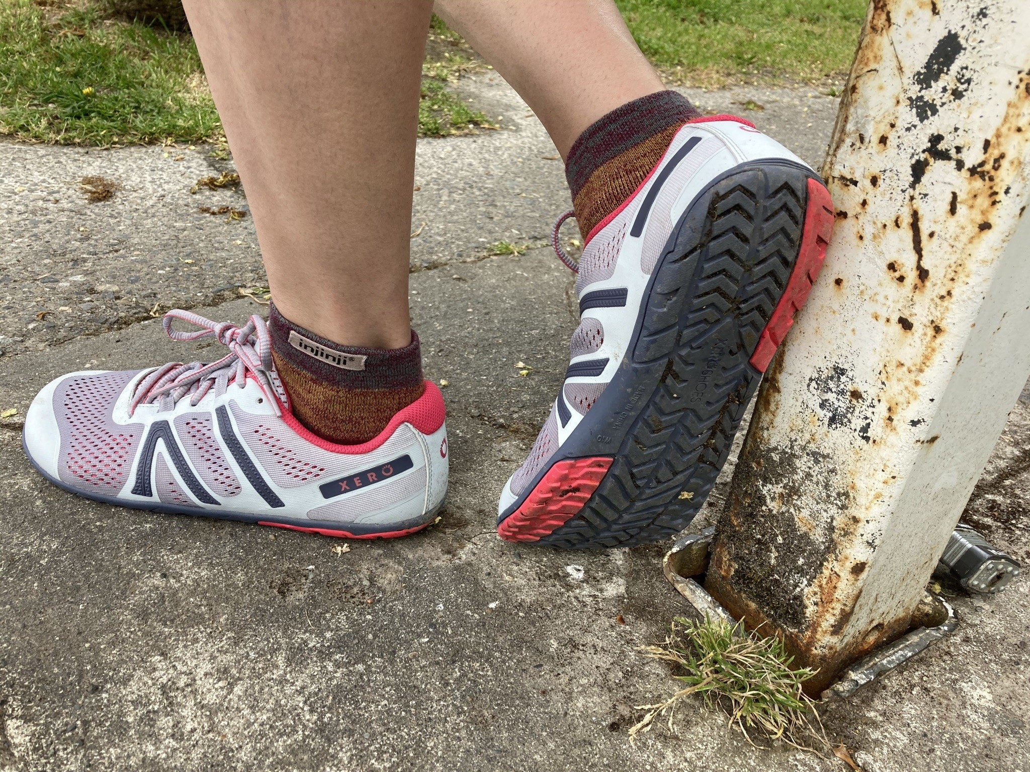 The HFS has a soft and breathable upper made of mesh. This is not typically the most durable material, but Xero added a solid toe rand to add some reinforcement in high-impact areas likely to see the most abrasion on rocks and curbs and anything else you might almost trip over…