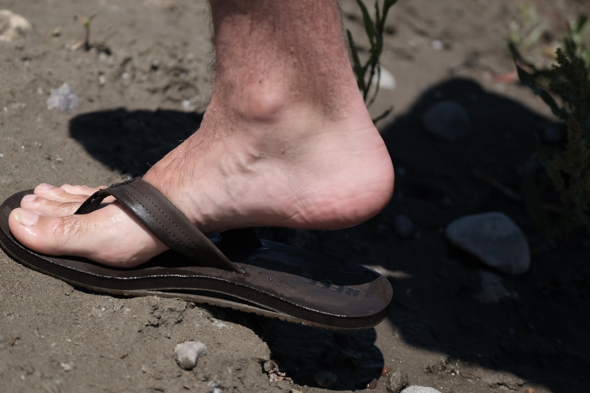 The Draftsmen have the classic look of the casual leather flop made popular by Rainbow at a similar price. On the bottom is a built-in bottle opener and, with a little practice, it's easy to open a beer without even taking your shoe off. One tester thought this feature was really cool, but the majority of our testers and our friends agreed that opening a beer with your foot is gross and gimmicky. Sometimes the bottle opener would even become clogged with mud.