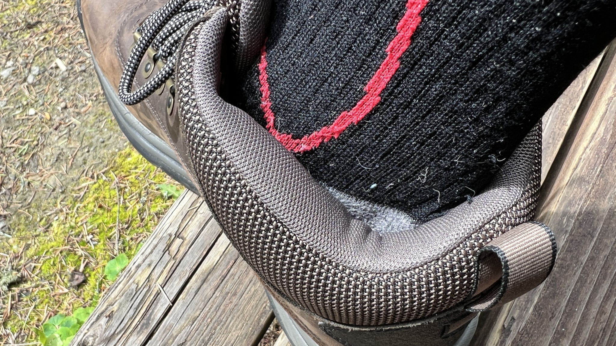 While the ankle cuff is generously padded with this fabric lining, it does feel tight and constricting around the ankle when laced up. Since the heel area below is too roomy, we found that this bulky padding negatively impacted the boot's comfort. The bulk may pack out over time, but initially, it is way too tight around the ankle.
