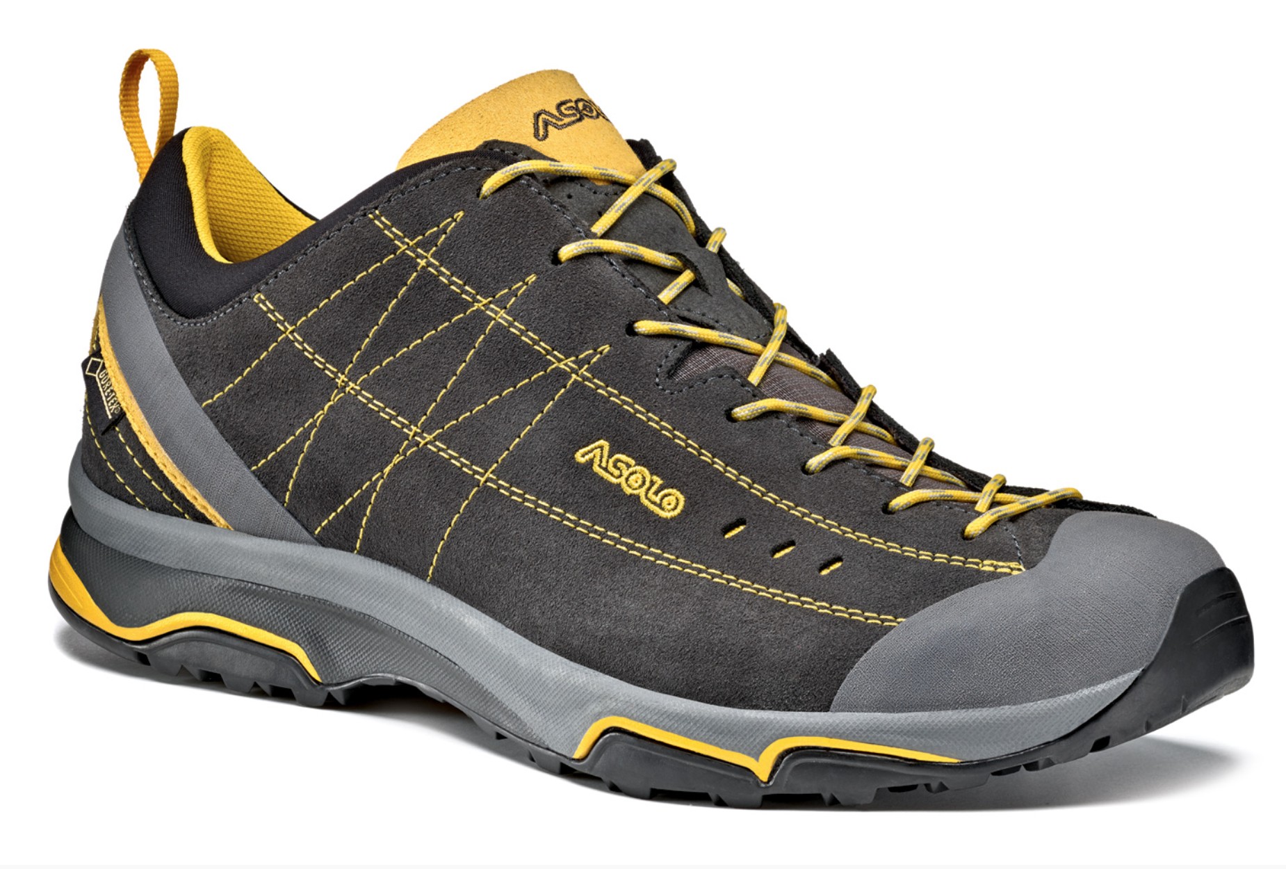 The Nucleon GV is an adequate shoe for longer hikes as long as the packs were not too heavy, and performs quite well as a day-hiker and casual around the town shoe, unlike several models we tested. The style of the Nucleon GV is casual and simple, with a soft grey color accented by yellow laces and stitching, and they look great. They are not quite an approach shoe, yet not a fully-fledged hiker, making them a perfect choice for moderate outings.