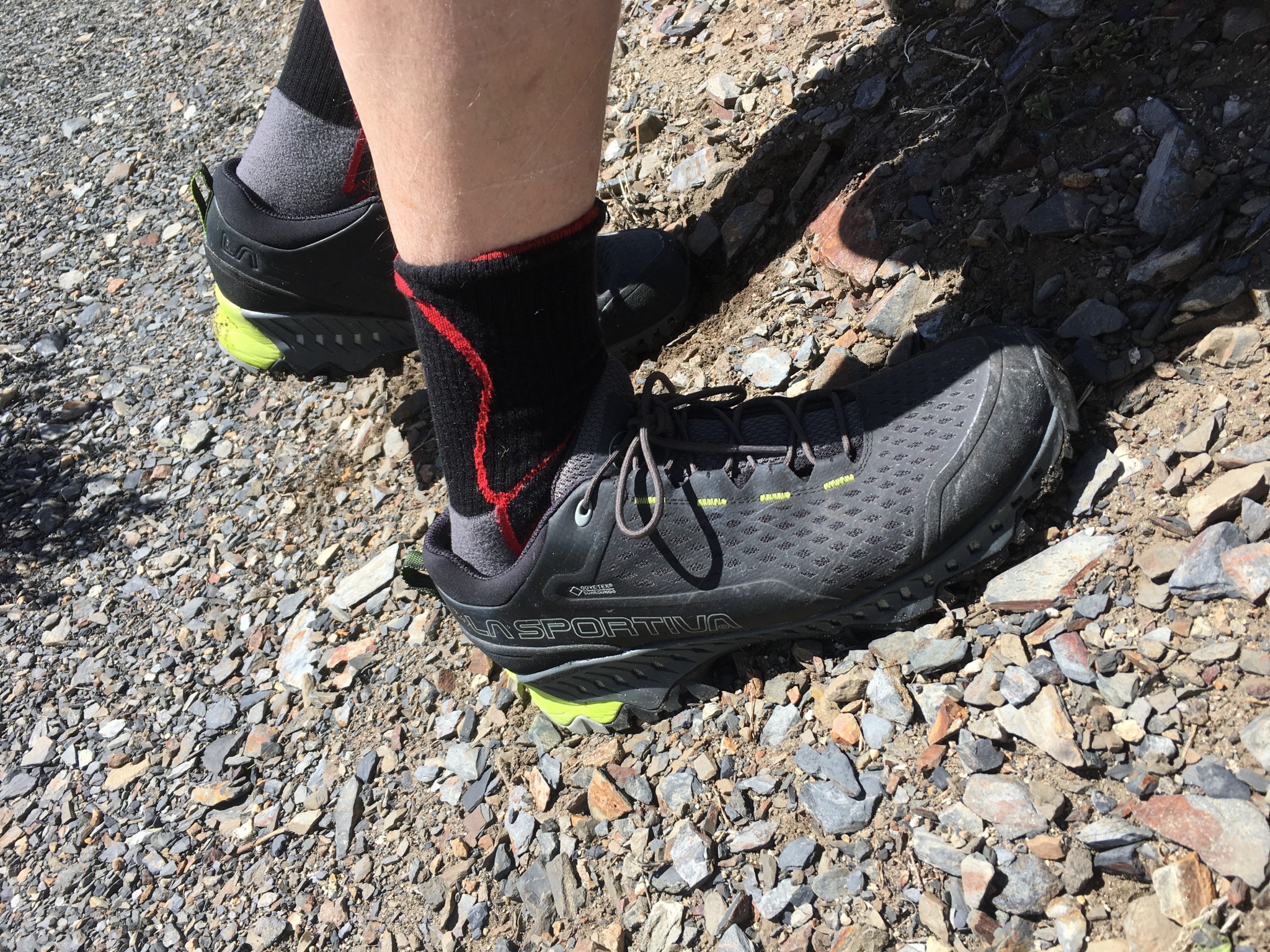 The Spire GTX uses the Vibram XS Trek rubber compound for the outsole. This rubber is very grippy and made scrambling on both wet and dry rock easy, although in steeper rock sections where smearing was required, these shoes did not do as well as those with smoother soles and slightly stickier rubber.