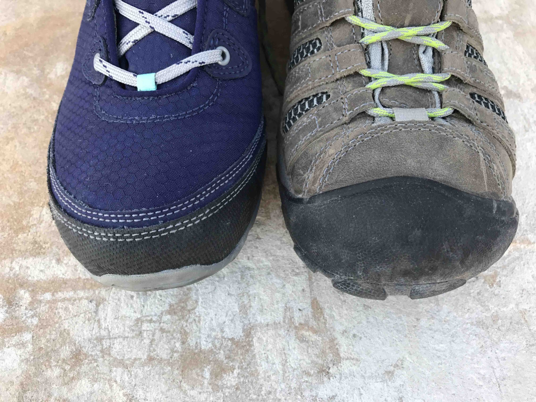 Overall, these shoes seem sturdy and durable. The extra rubber on the toe gives the shoe a “function over fashion” look, but holds up to as much toe-stubbing as the sloppiest hiker can manage. However, the first thing to wear out is the exposed EVA foam on the sole, which is fragile compared to the bottom rubber.