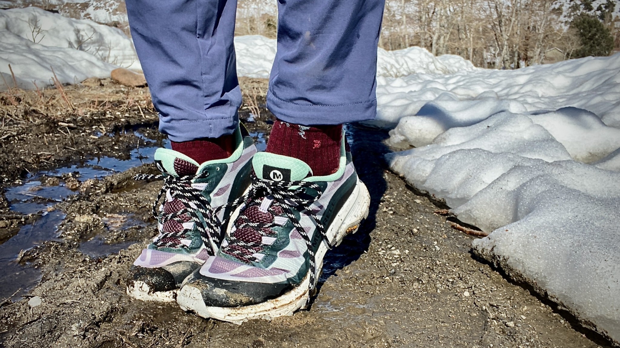 While this is not a waterproof design, the shoe does well when moving through spring runoff, including saturated snow, mud puddles, and shallow creek crossings. Ultimately, we were surprised that this non-Gore-tex design also lacked breathability. Typically waterproof protection limits breathability, but since this has a fully mesh upper, we expected more airflow within the shoe to increase comfort and prevent hot spots.
