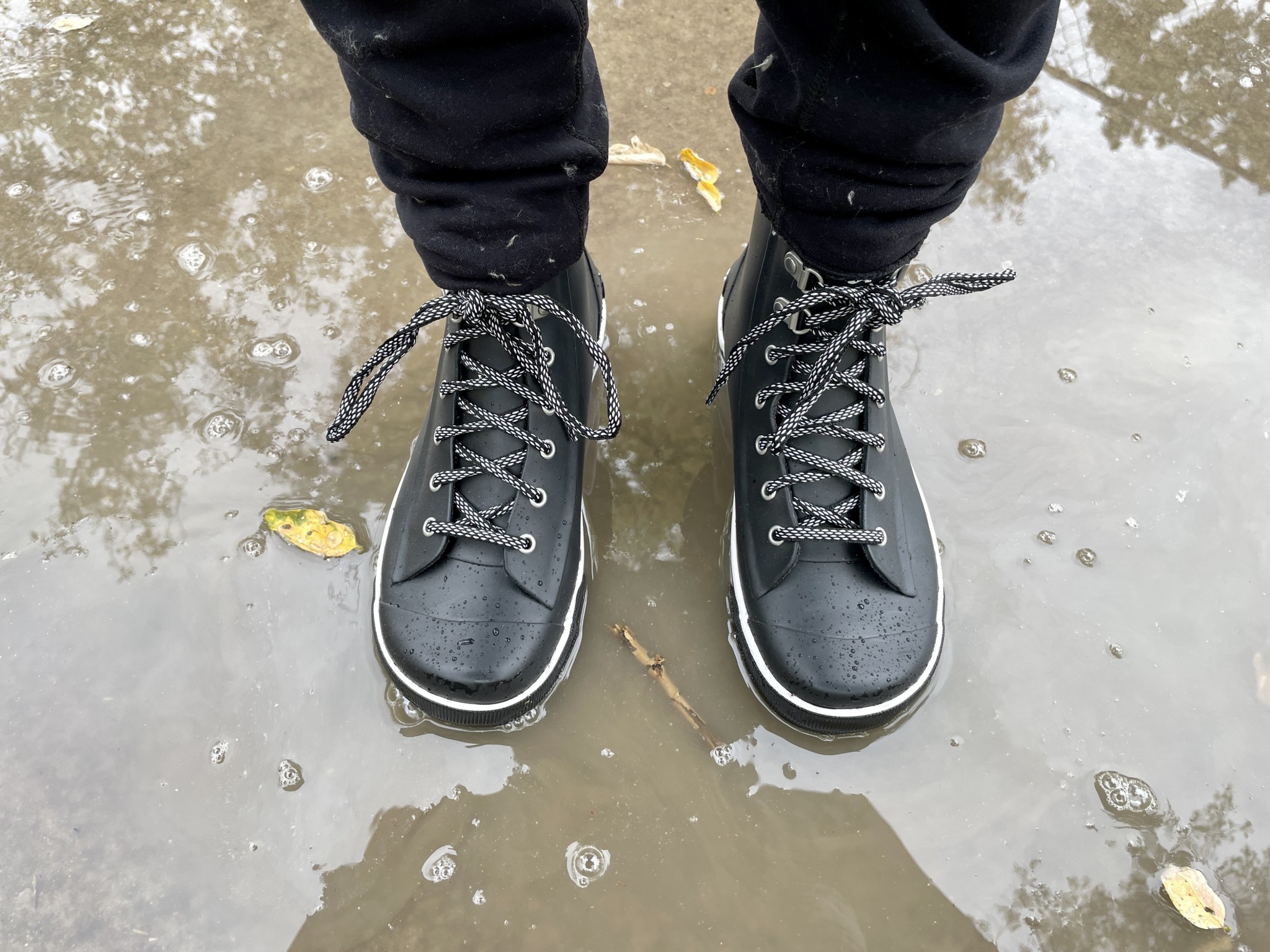 Even though the top of the shaft measures 6.5 inches from the ground, the rubber tongue is only partially attached. This means that the actual flood height is 4.25 inches. There isn't too much room for error if you find yourself near puddles or overflowing gutters in the street. Best for low-key rainy days, we definitely appreciate how the shaft's snug circumference (9.5 inches) keeps overspray from entering at the top of the boot.