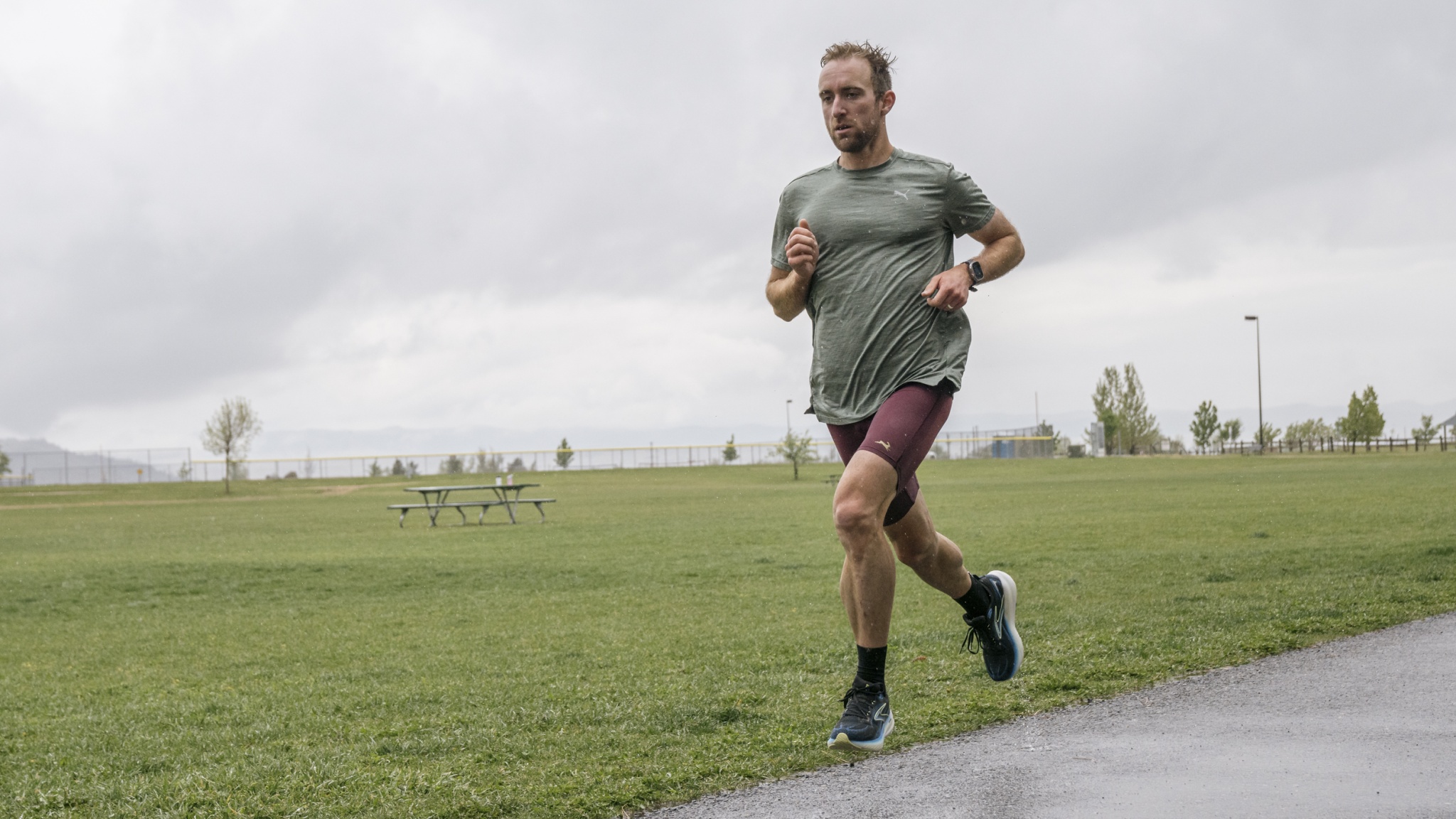 On the other hand, the transitions at the forefoot of the shoe are pretty poor. Some of that is likely due to the geometry of the 10 mm drop. There is 39 mm of foam at the heel, tapering down to 29 mm at the forefoot. While I do tend to land farther forward on my foot, I do still enjoy shoes with a higher drop (like the 11 mm Nike Vomero 18 and Puma Velocity Nitro 3). The issue with the Glycerin 22 is related to the choppiness of the geometry. Typically, a higher drop shoe benefits from a smooth rolling transition at the forefoot, or a rocker geometry. The Glycerin has neither of those. Instead, it feels like the shoe wants to flex at a thin point just behind the ball of my foot rather than roll through the transition. That becomes especially noticeable at faster paces, when the shoe begins to feel awkward and rough at the forefoot.