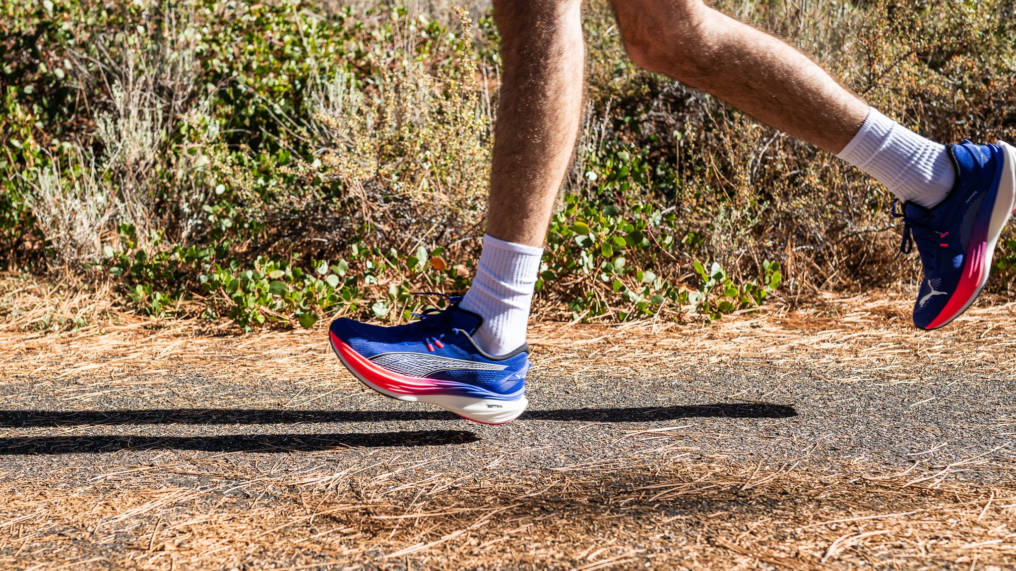 We were disappointed with the Deviate Nitro 3's upper fit. It's a performance fit, so we expect a bit of narrowness. However, not only was it narrow, but the toe box tapered too early, and the overall volume was too low. Putting the shoe on felt like we were trying to shove our feet into a shoe that was too small. Other users (and our women's testers) have reported the same feeling. The lockdown was excellent, and the materials were comfortable. However, we experienced rubbing on our small toes as a result of the narrow, tapered toe box. The shoe runs a little short, and we'd recommend sizing up a half size.