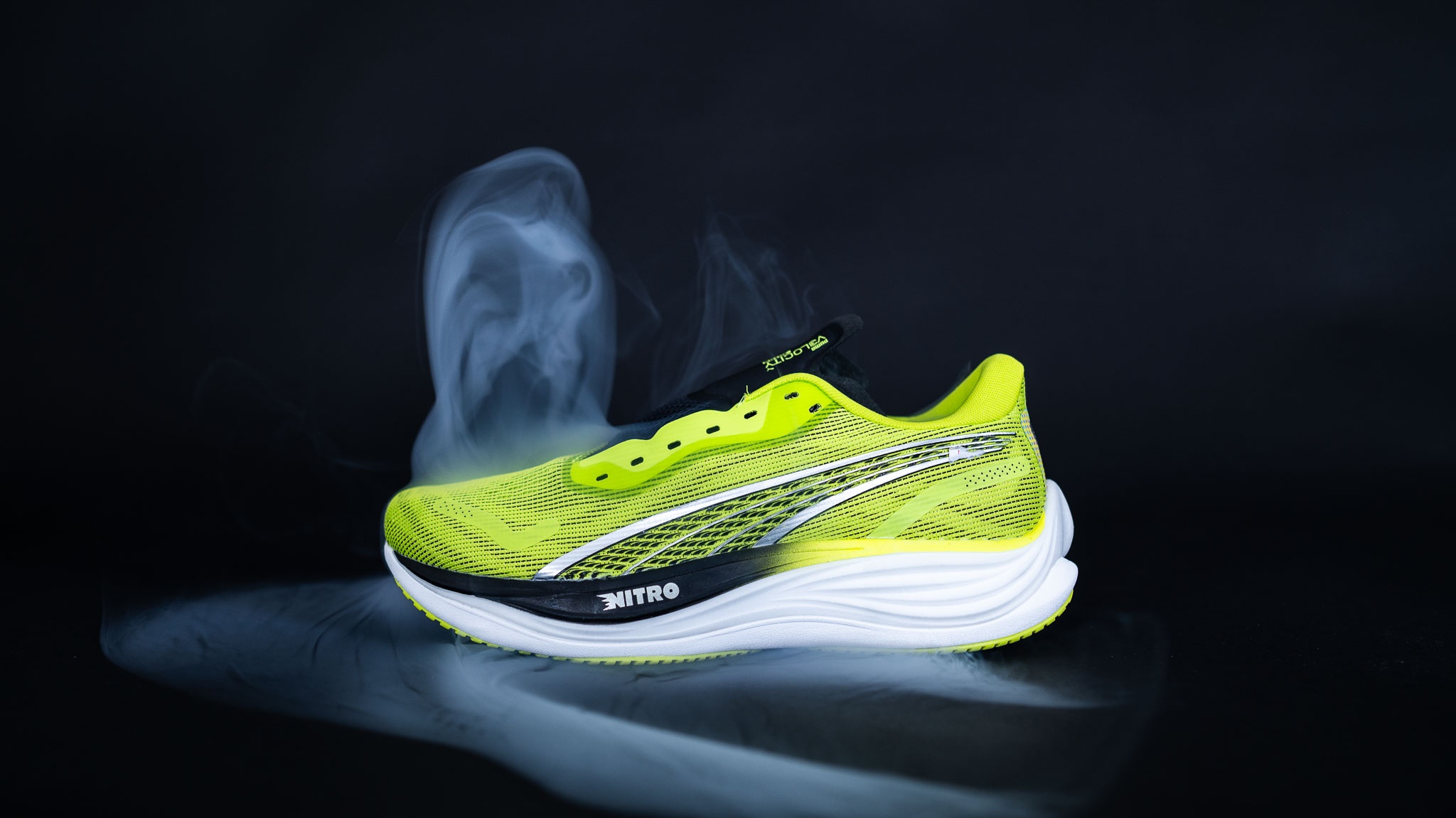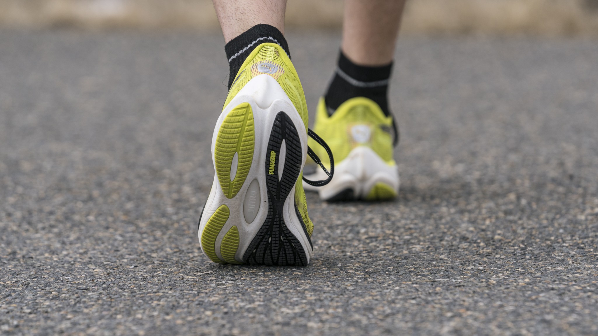Puma claims an 8 mm drop, but we measured 11 mm in a US men's size 10.5 in our standardized testing. That's typical for a daily trainer, and this shoe runs like it. The heel feels more built up than in the last version. Previously, the Velocity Nitro felt like it had a lower drop than we measured in the lab. We don't mind the difference and actually prefer it during longer runs.
