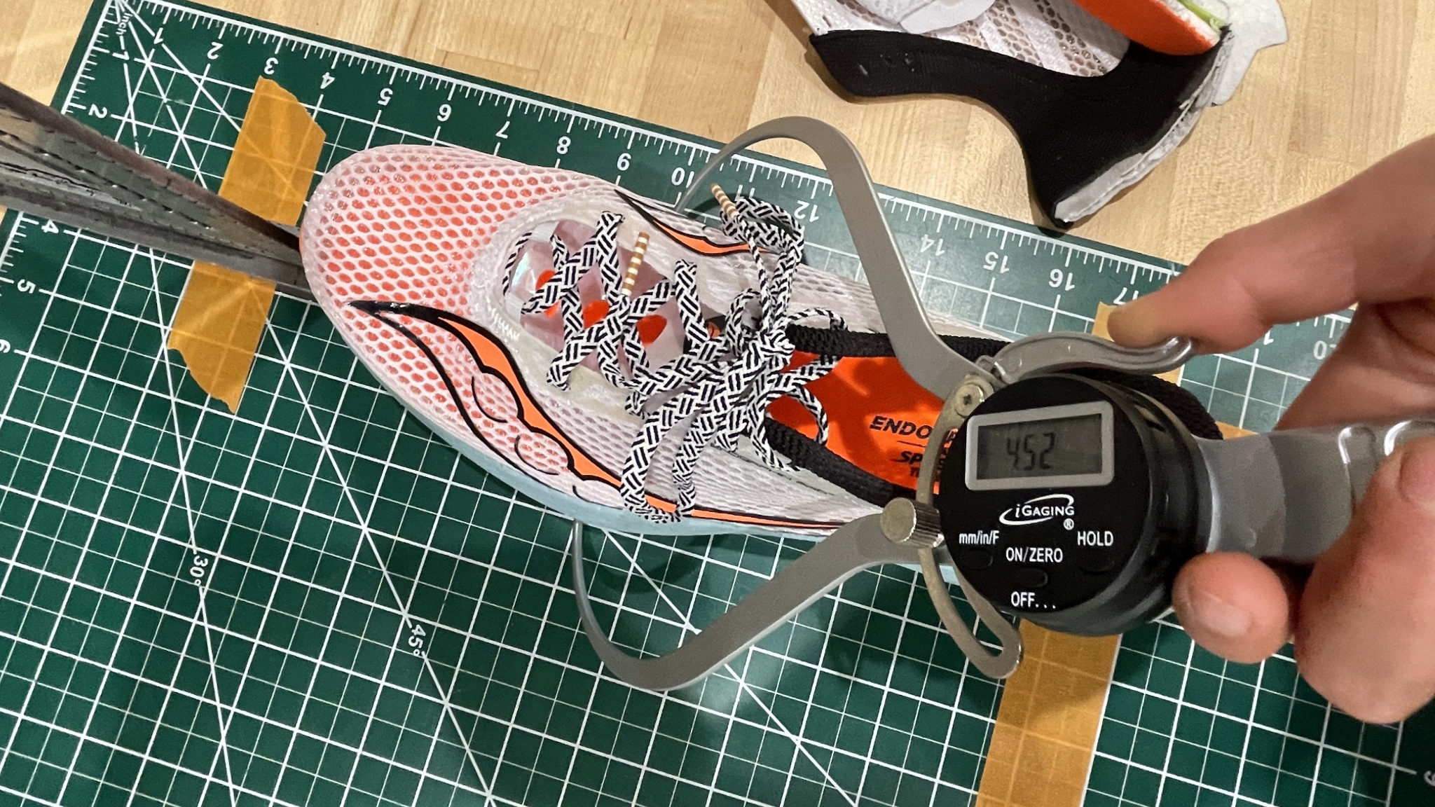 PWRRUN PB is one of our favorite foams on the market. In the Endorphin Pro 3, we think it's nearly perfect, combining a lively bounce and energy return with a soft landing that never bottoms out. We measured 39mm of foam in the heel and 27mm in the forefoot. The 12mm of drop is combined with a Speedroll rocker that feels extremely propulsive without ever feeling intrusive at easier paces.