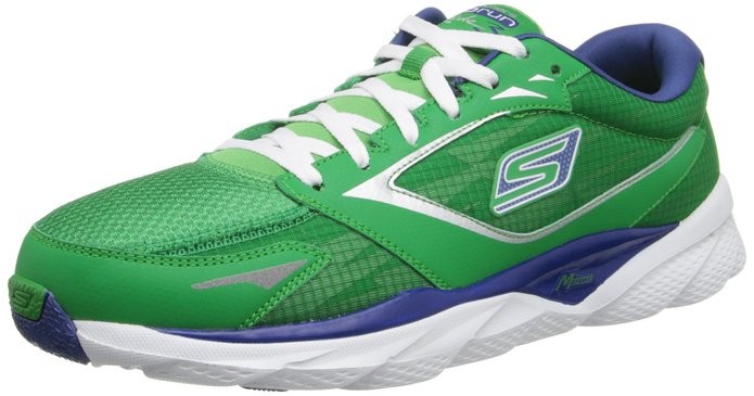 The “MStrike” landing pad Skechers uses for the outsole provides a slight curvature on the heel and a more dramatic curvature on the forefoot. This unique design among various Skechers footwear vaguely reminds us of the Skechers ShapeUps from a few years back. The goal here with using a U shape curve is to facilitate the runner to land on the midfoot to toe-off instead of heel first to toe-off.