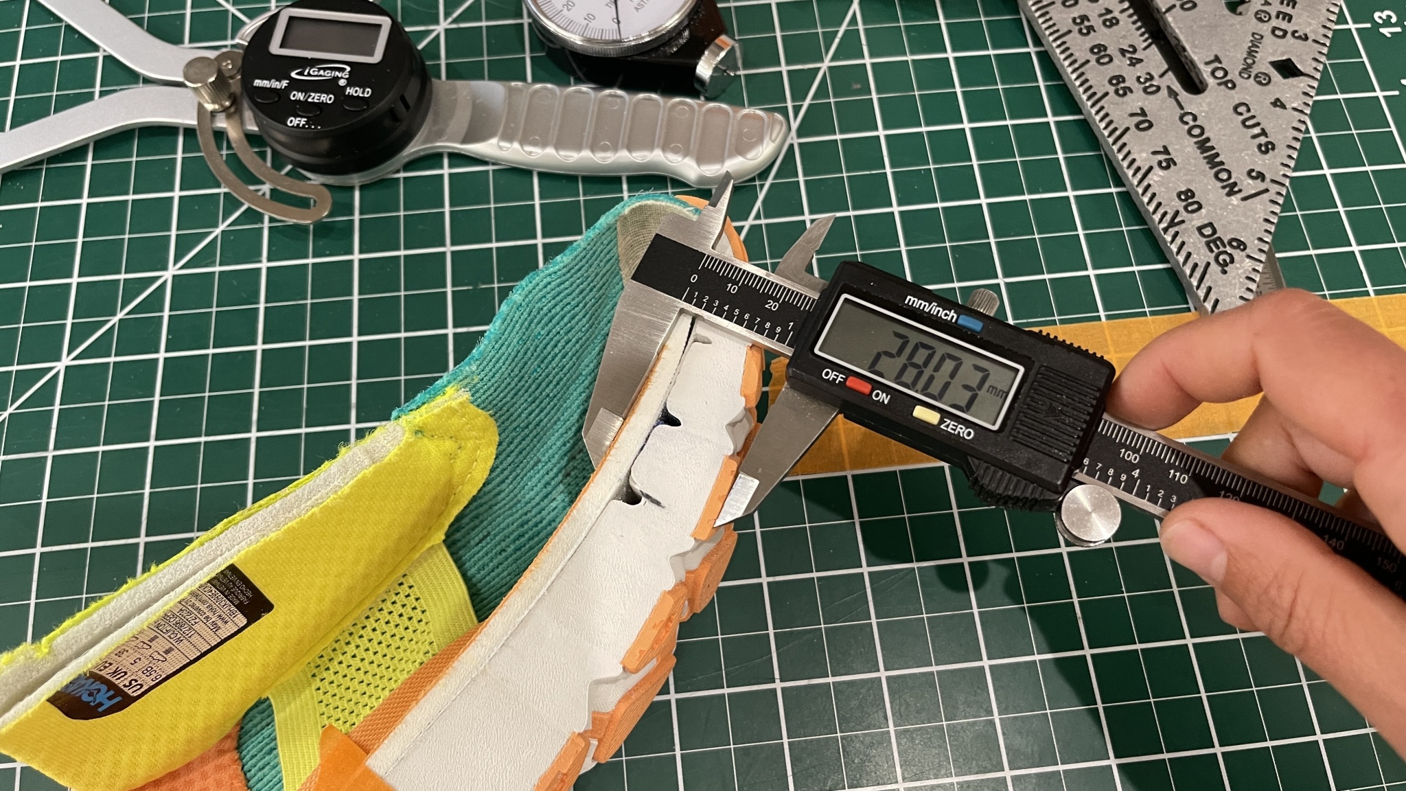The overbuilt aesthetic of the Clifton renders it incredibly stable for a neutral running shoe. The contoured heel cup and thick heel cushion lock your heel in place, creating stability from the back forward. The midfoot doesn't have extra structures for lateral support, but the engineered mesh upper is strong. The outsole extends upward ever so slightly, which helps feet stay comfortably locked into place. The 6 mm drop (our measurement — Hoka claims 5 mm) forces the heel to sit on a similar plane to the toes, unlike more traditional road shoes with a 8-10 mm drop. This further encourages comfortable stability.