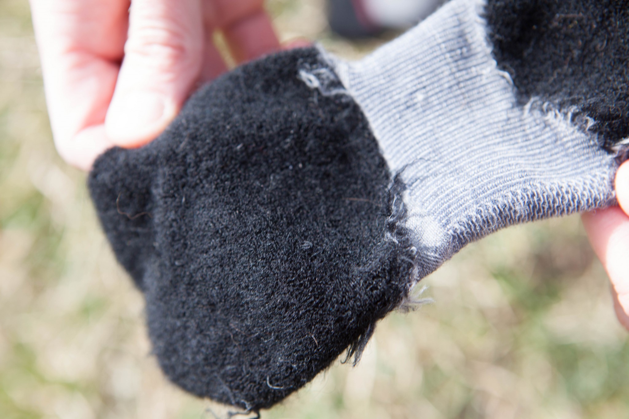 This sock performed up there with the best when it came to wicking moisture away from the foot, roughly the same as the Thorlo Experia XCCU, but not as good as the very unique DryMax Running Mini Crew, our Top Pick for Wicking. After the 15-minute on-the-foot test we found that there was quite a bit of moisture still present on the outside of the sock, but that the inside, especially the wool padded areas, were much dryer. This led us to conclude that the heat from our foot was indeed helping moisture to wick through the wool fibers of this sock. In the one-hour drying test, our findings were validated. The wool pads on the inside of the sock were once again the driest parts, showing that they didn't absorb as much moisture as the nylon fibers, and also dried out faster. We gave this sock 8 out of 10 points for wicking, and think that it is a great choice for runners who often run in wet or rainy conditions.