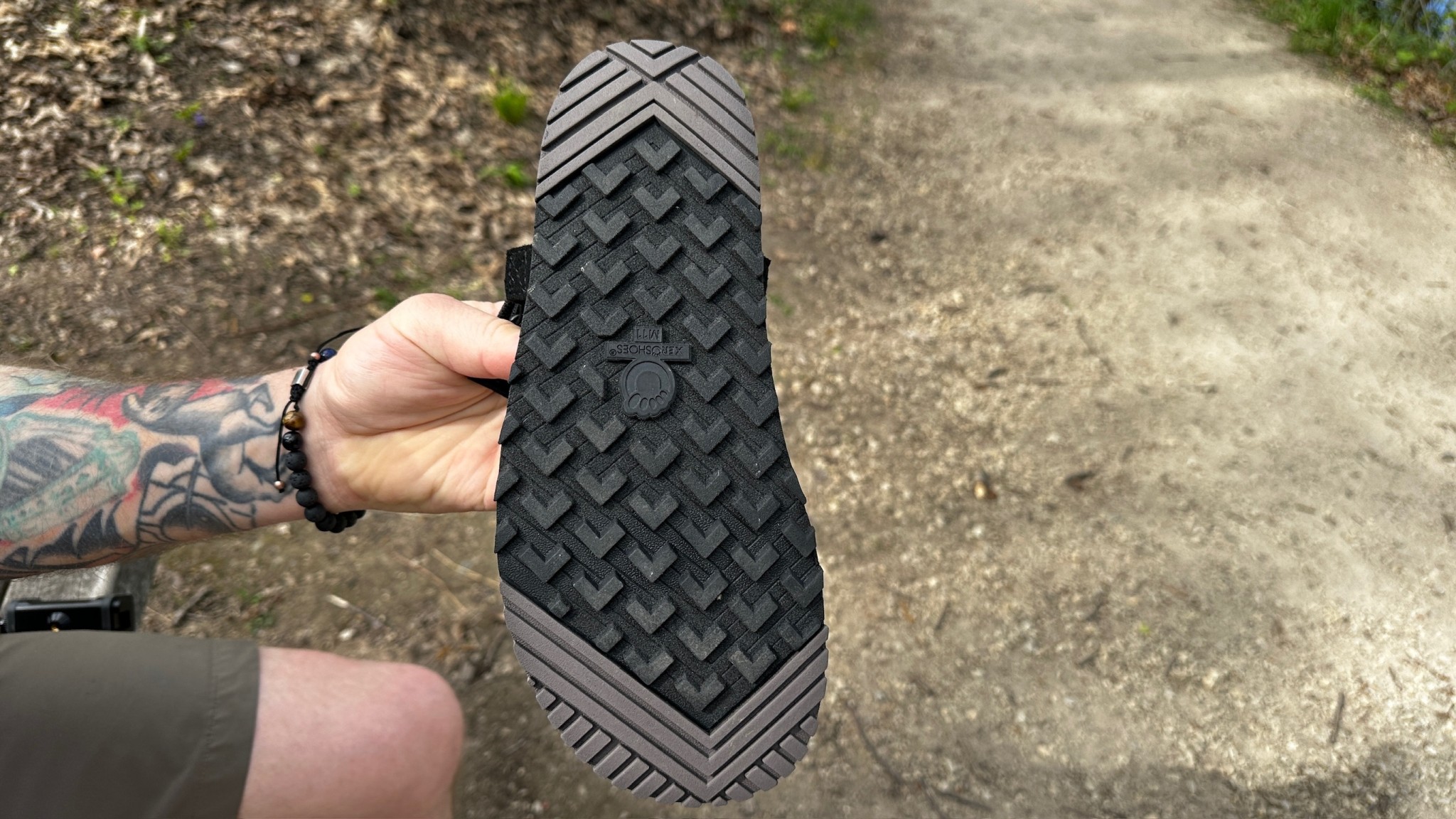 The Xero H-Trail features a rubber outsole with a dual chevron pattern for improved grip in various environments. The middle portion features directional lugs that extend from the forefoot to the heel, allowing for effective digging into loose terrain or mud. The far edges of the toe and heel region have closer lug bars in varying directions, helping to channel water while providing additional real estate for friction. Previous models by Xero featured foam on the sole, which was a weak spot; however, they have moved away from that design in this model.