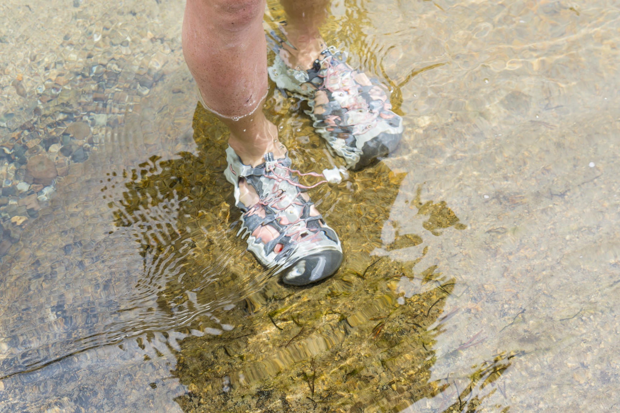 This hybrid sandal was made with wet environments in mind, and it sports a grippy outsole with decent traction. The rubber is sticky enough to feel secure on slick river stones, but our gripe is with the cushioned heel. Because we can't feel surfaces through our feet due to the extra material, we don't feel able to really trust the traction on steep or wet surfaces. We prefer other Keen models for this purpose, where we can walk around with much more confidence on slippery or uneven surfaces.