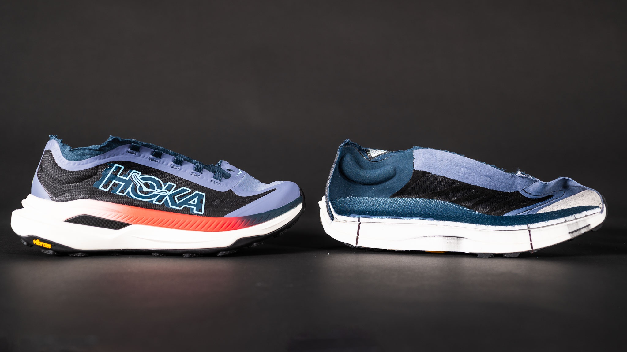 A thin toe bumper helps protect against any accidental impacts but is less rigid than some of the others in our lineup. The Matryx upper is both comfortable and durable, and the new knit upper helps keep out trail debris. Most carbon models suffer in technical terrain, but this Hoka shoe is an exception in the market.