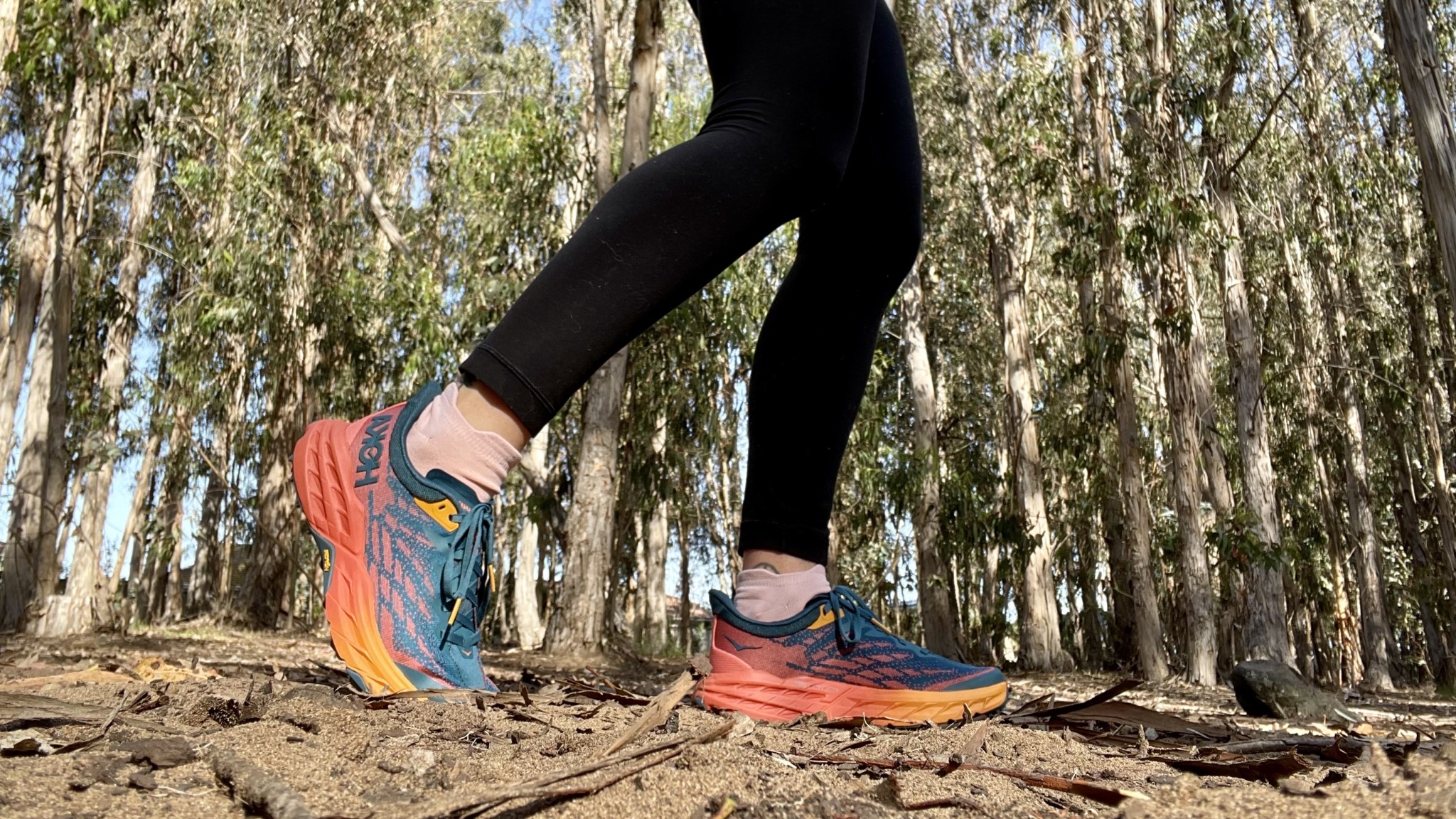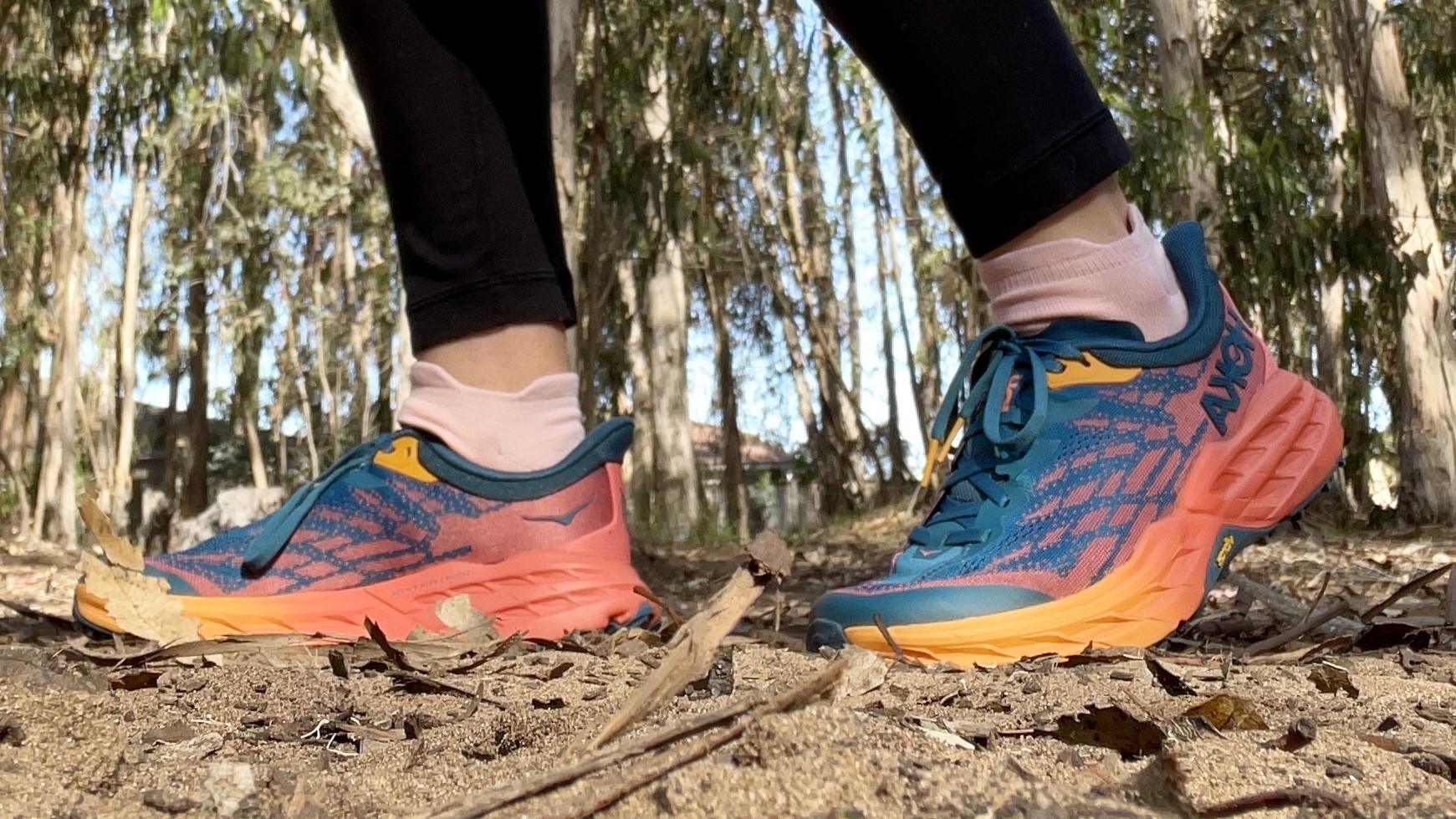 The Speedgoat 5 is not a sensitive shoe by any means. At its highest, your heel is lifted 33mm off the trail, and at its lowest, a tall 28mm.