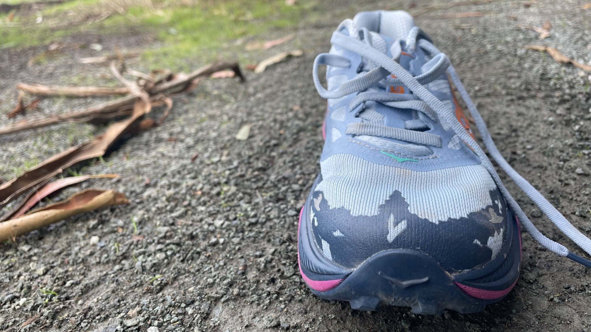 Almost always, Vibram-outsole shoes score higher in the traction metric of our testing, and we'd love to see the Torrent truly shine here. Hoka did redesign the lugs and lug pattern, adding 1 mm of depth to the lugs. The newly sharpened lug corners add slightly more bite, but I noticed that this outsole sheds mud more poorly than the Torrent 3. The traction of the Torrent is solid, providing confidence and grip during each of our tests. It holds its own on mixed terrain, but I found myself wishing for the extra stick of Vibram. The Torrent 4 does prove that increased sensitivity can enhance traction, as its firmer, low-to-the-ground undercarriage delivers sharper trail feedback that promotes grip on the trails.