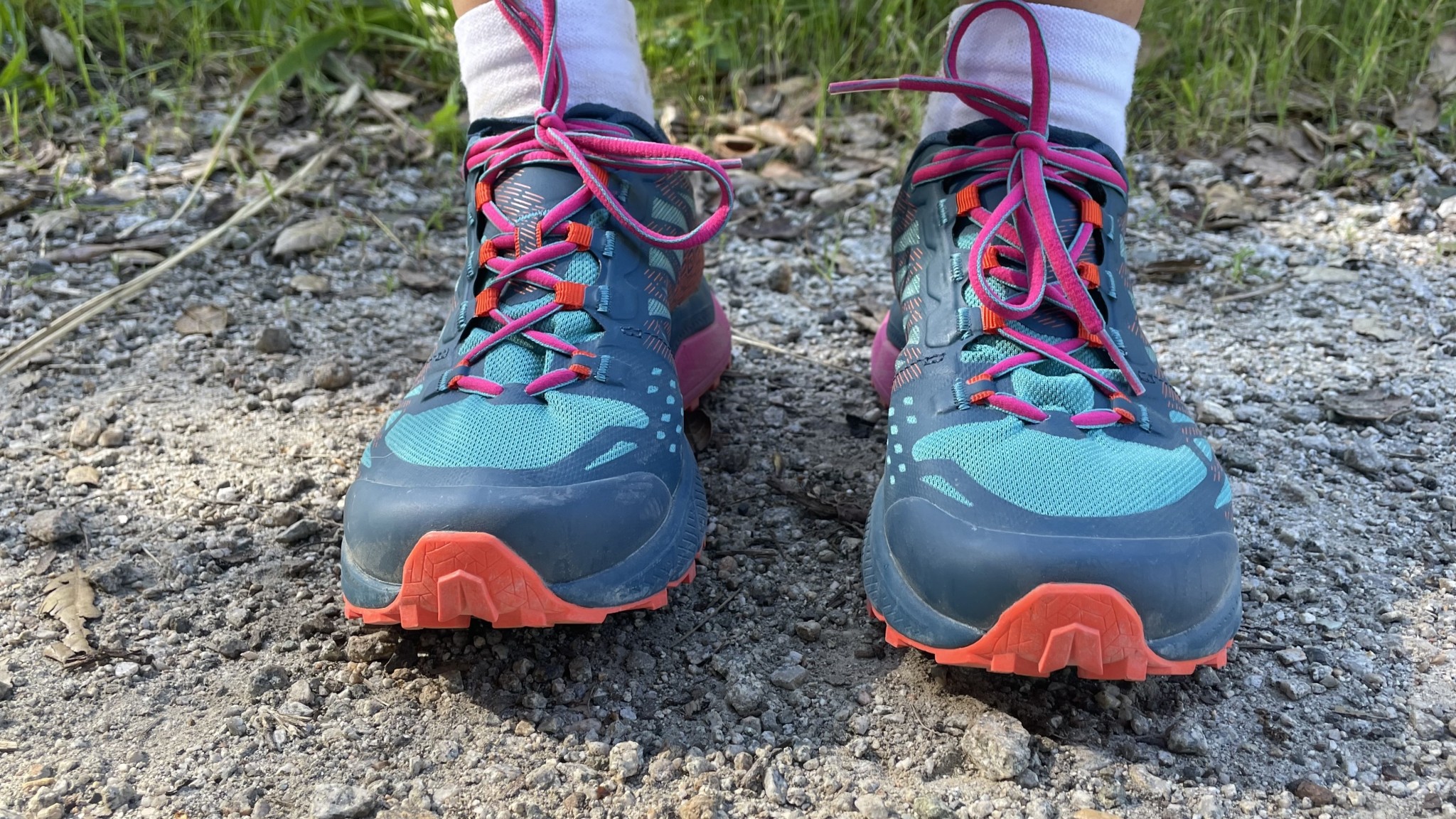 The Jackal II has an embedded rock plate, a 0.19-inch insole, and 5.6 mm lugs — a stack full of features that provide great underfoot protection. The Mono-Burr mesh upper keeps feet cool on warm days and expertly deflects sand and trail debris. When it comes to water, the upper saturates rather quickly. Since the Jackal does not provide a ton of cushion, any water that gets into the shoe drains within minutes, allowing your feet to remain comfortable. The materials of the Jackal are quick to dry after being fully submerged, making this a great shoe for summer runs when you know that wet feet are inevitable. Our testers had no problems with blisters or hot spots while running through streams. The toe cap of the Jackal is incredibly functional at protecting rocks from busting up your toes. However, the interior of the Jackal is not very plush, so ramming your toes into the front of the shoe on downhills can hurt. We recommend wearing thick running socks or buying a half size up to compensate for this if the other features appeal to you.
