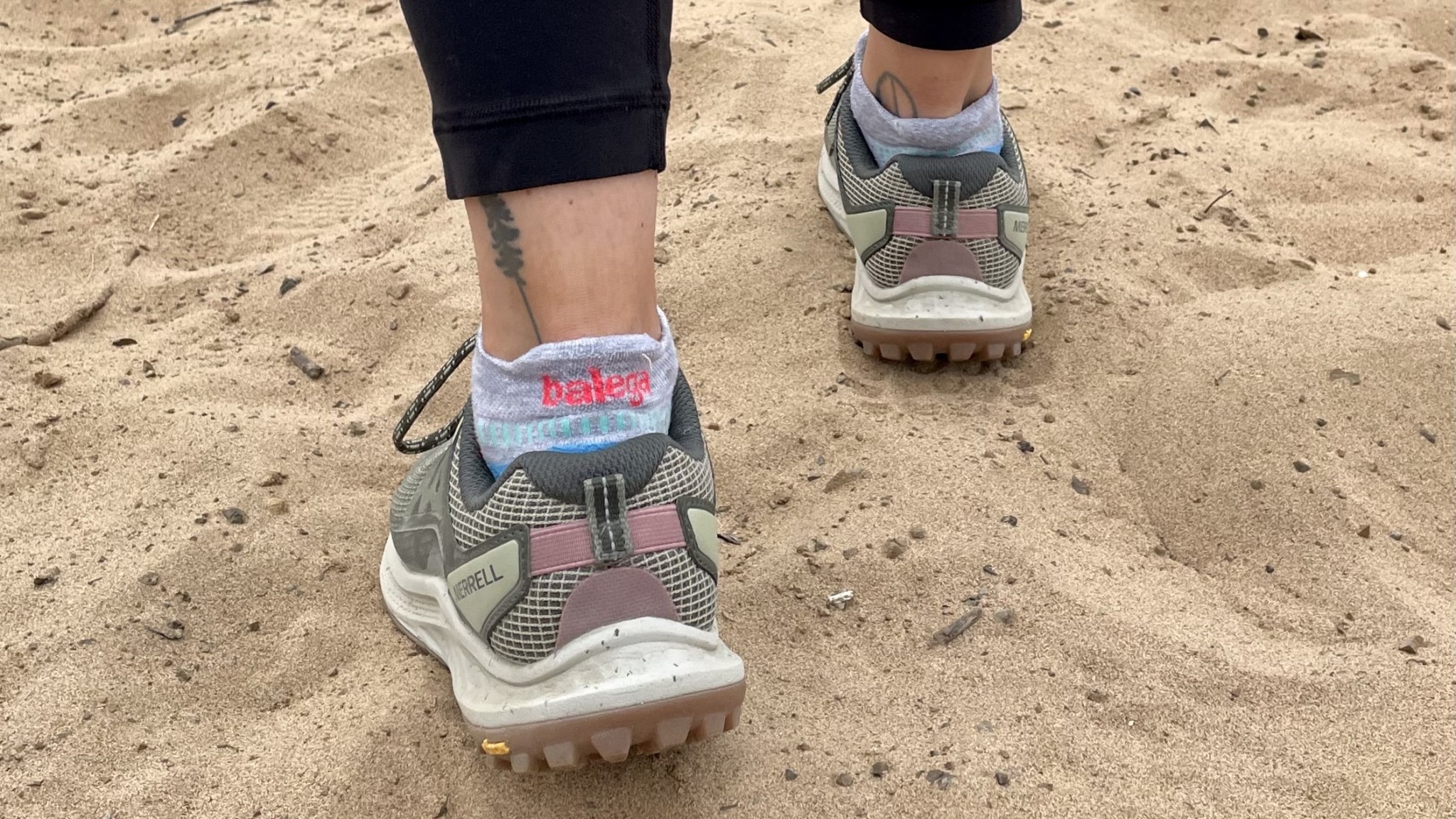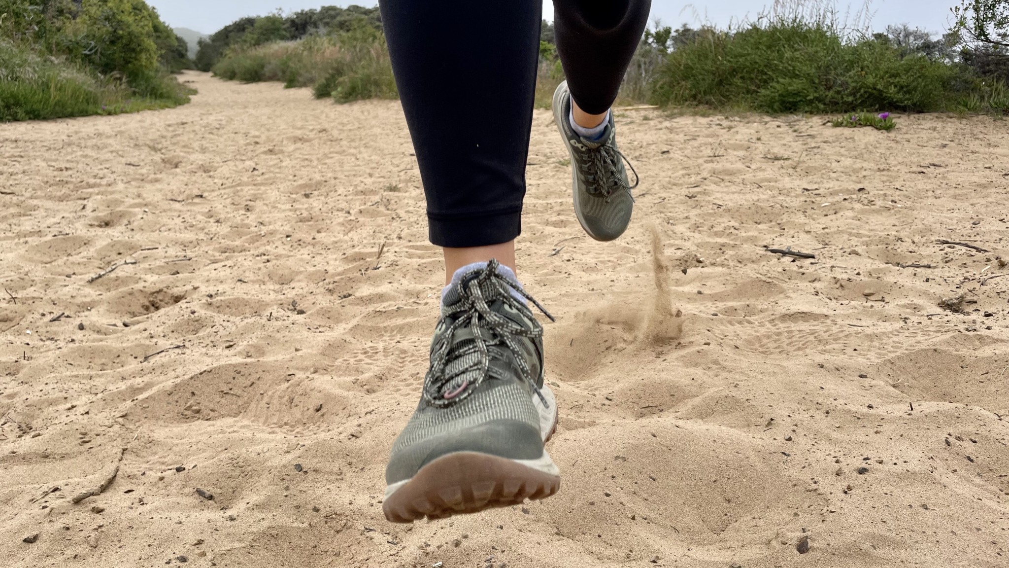 One of the unexpected protective features of the Antora is the thickness of the heel collar. Initially, it feels thick and supportive, but once your feet hit sand or loose dirt, it becomes obvious that the collar is also a protective barrier. Thick and well-curved, it does a great job of preventing sand from slipping in through the top of the shoe. The mesh and TPU upper is well made and configured in such a way as to offer great breathability but protect sand from getting in through the upper as well. The TPU adds extra durability to the forefoot of the shoe, though it doesn't protect super well against water. Because of how thick the Antora is, it doesn't dry the quickest after splashing through puddles. However, even when wet, the materials remain comfortable.