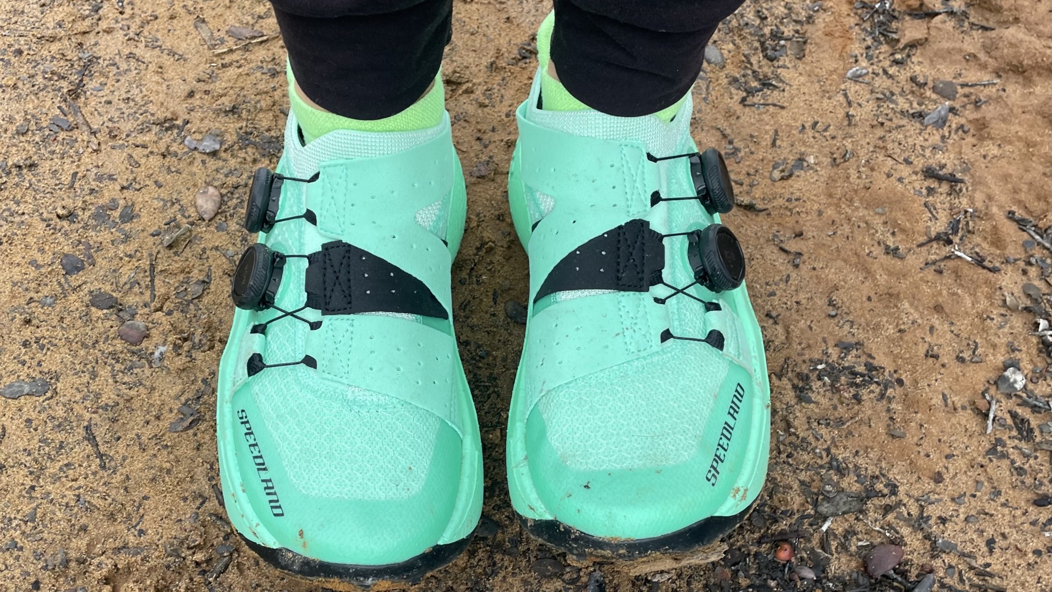 The upper mesh is lightweight and breathable while still offering sufficient protection. This breathable section doesn't significantly impact the GS:PDX's foot protection score because it makes up a rather small portion of the shoe. Additionally, the BOA lacing system, strategically placed overlays, and dual-layered gusseted body contribute to the shoe's robust protective capabilities. The heel collar offers comfortable cushion to ensure a snug fit. This feature helps keep sand and flying dirt from infiltrating through the collar. Without much cushion on its interior, the GS:PDX does ride a bit like its ready to get wet. Upon researching the nuance this shoe offers, we discovered that it offers optional drainage holes on its outsole. If you expect to splash through puddles and want your shoes to be able to shed water, simply take a pair of pliers to the rubber dots entitled “Drainage Hole” and pop them out to reveal screen mesh perfect for shedding liquid.