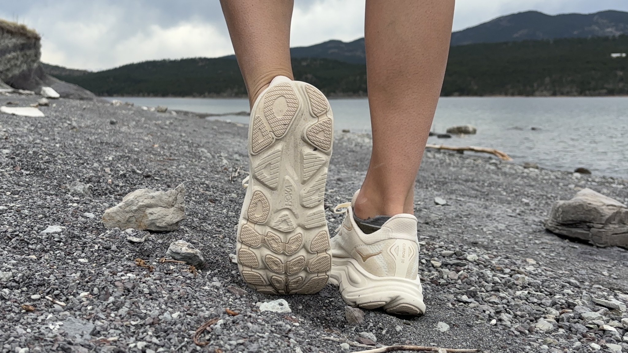 The only surface these don't do well on is gravel with larger rocks. Gravel can be tricky to walk on, and the large, stiffer surface area of these shoes doesn't help. We didn't feel like we would slip necessarily, but we felt less secure in each step. If you often walk on gravel paths, you might opt for a shoe that isn't so broad. The Clifton 10 did exceptionally well on all other surfaces.
