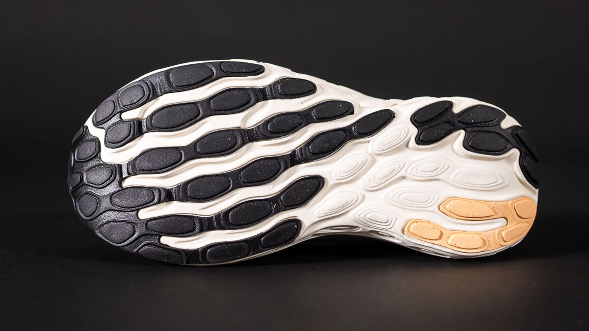 The Fresh Foam 1080's outsole features a distinctive bubbly traction pattern that performs admirably across various surfaces. The blown rubber compound and strategic lug placement create a reliable grip on most walking surfaces.