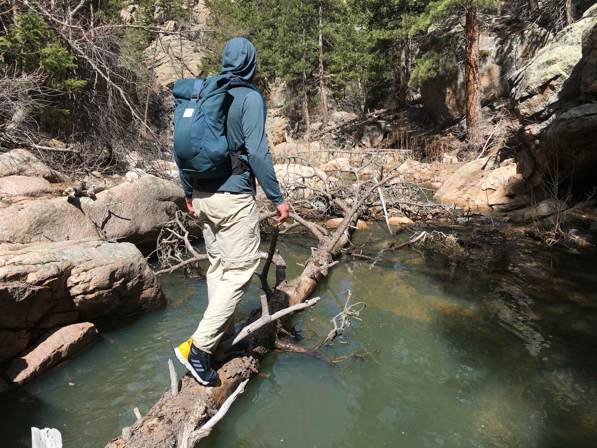 Like most great shoes, the Adidas Voyager does have a major Achilles heel: its expansive mesh leaves a large weak zone around the forefoot that is susceptible to tearing. The light and airy upper is great for lots of situations, but we absolutely would not recommend jamming these shoes in cracks or sliding down waterfalls with them while canyoneering.