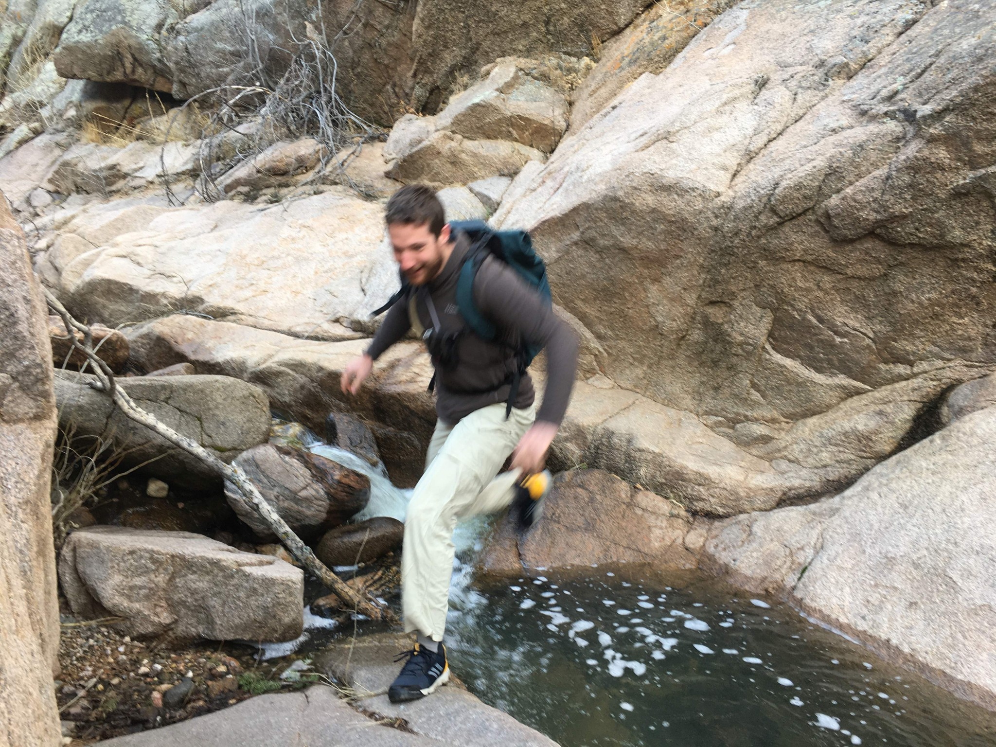 One of the nice things about a thicker, cushioned midsole is that it tends to glom a lot of rubber on the rock without making you think too much about foot placement. Even scrambling in these shoes, we smedged and smeared our way around with confidence.