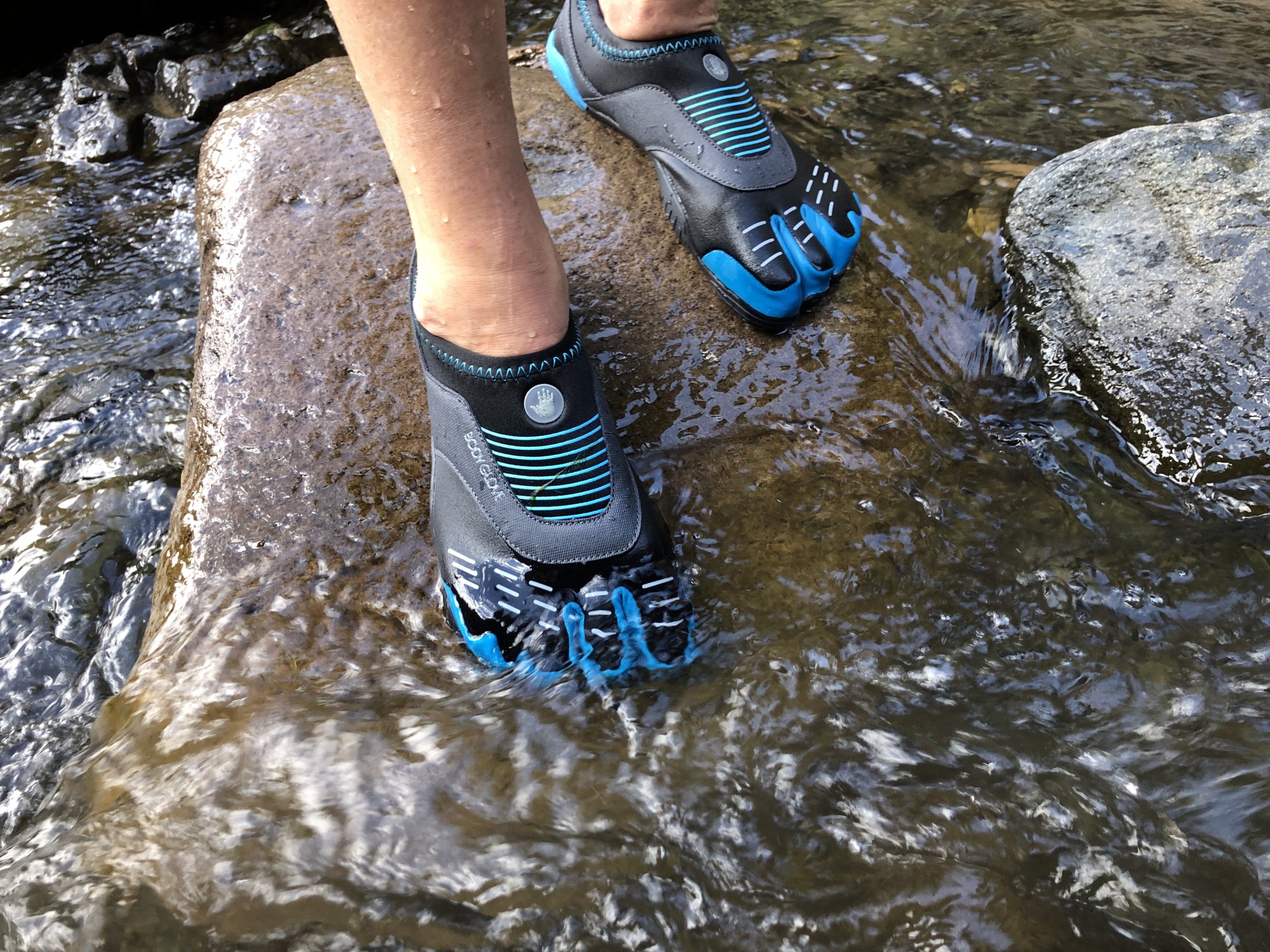 Our feet warmed up after the body heat kicked in on dry land, but as soon as we got in the water, the cold stream water poured back in again, and our feet got cold once more. For this reason, the Body Gloves didn't score highly in warmth despite their neoprene construction.