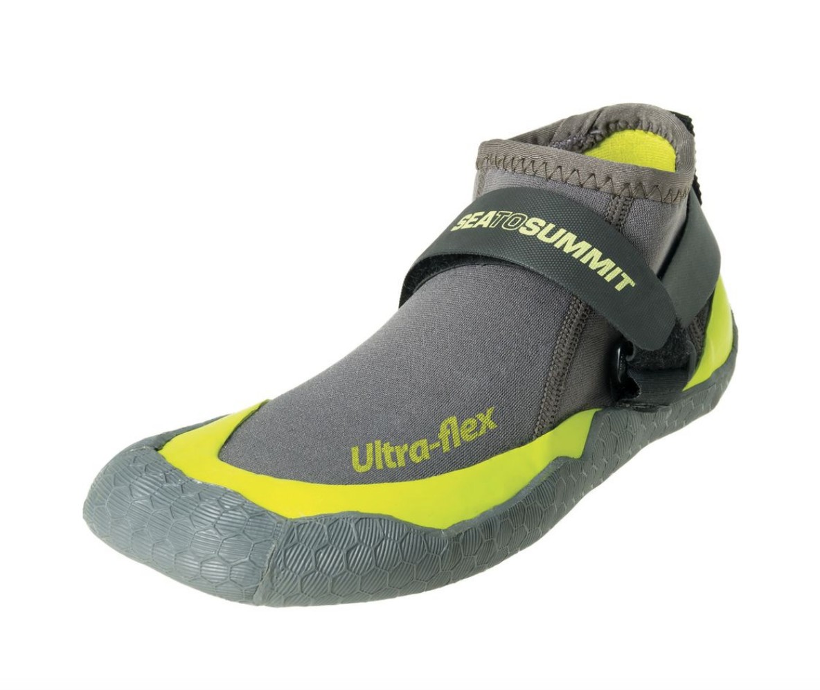 The Sea to Summit Ultra Flex Bootie thrives as a boating-specific shoe but lacks function in other areas. The 3mm neoprene keeps your feet warm in cold water but is challenging to pair with socks or a drysuit. It's made to be flexible, sensitive, and low-profile, and for this, it excels. While you wouldn't want these shoes if you plan on doing long portages or scouts, it will do the job of scaling a boat ramp at the put-in and take-out. For the playboater or swimmer, these shoes are a great value. It provides decent warmth and traction for navigating short hikes or portages. They lack durability, but you won't break the bank just getting another pair if you put a hole in the neoprene.