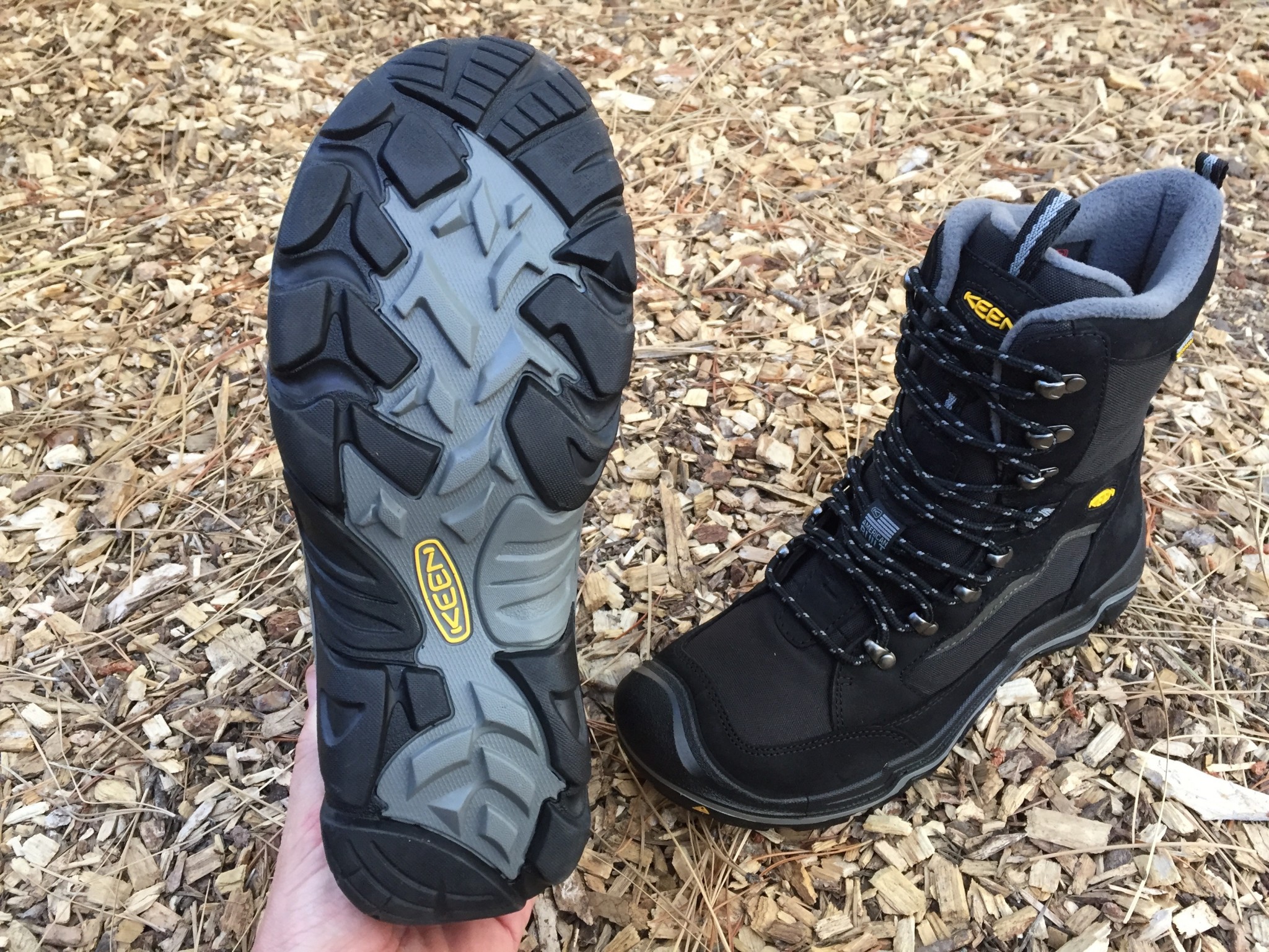 The Durand Polar is an impressively warm winter boot. They are rated to -40 degrees and feature 400g of KEEN.Warm insulation. This insulation is proprietary and lightweight, made with charcoal bamboo. Since we'd never heard of charcoal bamboo before we did a quick google search. It revealed that charcoal made from bamboo is often used to enhance properties like odor absorption and thermal radiation. In any case, Durand Polar boot's insulation is impressively warm and soft.