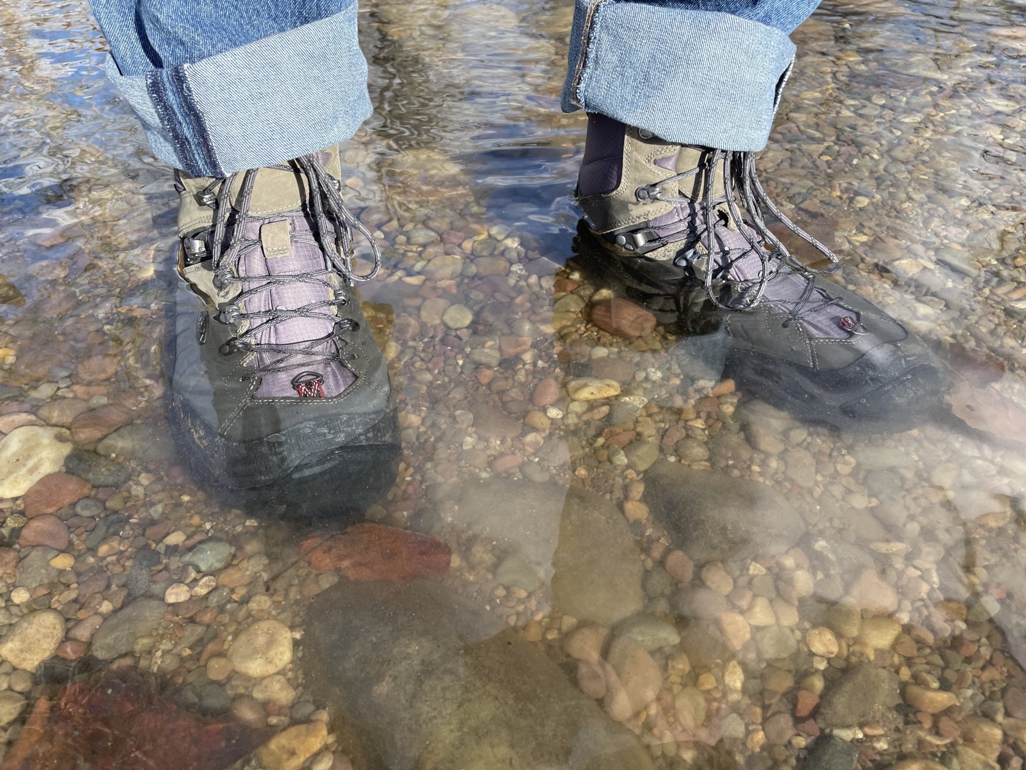 The Revel IV Polar is waterproof and didn't let any water in through the seams during our submersion tests. However, the boot and tongue connect only 5.5 inches off the ground, and water begins to seep in around 5" as soon as the water depth reaches the tongue seam. This is lower than other winter hiking boots on the market. If you expect to spend time wading through swamps or stomping through puddles, we wouldn't recommend this boot for keeping your feet dry.