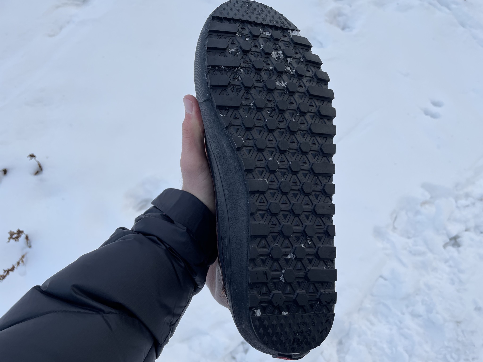 The Standard Snow has a sole that is not designed well enough to grip slippery surfaces. The small lugs allow for plenty of negative space, but the lugs are small and round, which isn't great for traction. Also, the lugs aren't deep, meaning these boots will simply pack down the snow beneath them and create more slips. However, the Vans rubber bites well on hard surfaces and provides good traction.