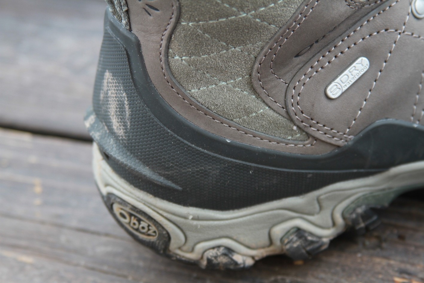 The suede is treated with DWR to help it repel water, and Oboz recommends treating the outside of the boot annually. While that helps water bead up at the surface, there is also a waterproof and breathable membrane sandwiched into the upper that truly keeps water out. This boot has you covered!