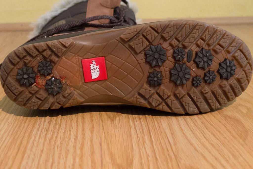 This product features The North Face's Winter Grip rubber with IcePick lugs. Unfortunately, we found this sole to be sub-par in our traction tests. We slipped more easily on the ice, we lost our footing on steep slush slopes, and skidded on slick logs. Boots that are more designed for winter hiking, such as the Columbia Bugaboot Plus III Titanium - Women's, are better options for high traction performance.