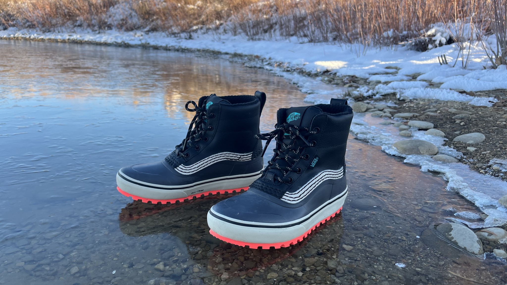 With 6" of height, the Vans Standard Mid Snow MTE rank on the low end of our 20 test boots, ranging from 5.5" to 16". In our water depth testing, our feet stayed dry in 5 inches of standing water but at just under 6", water seeped in.